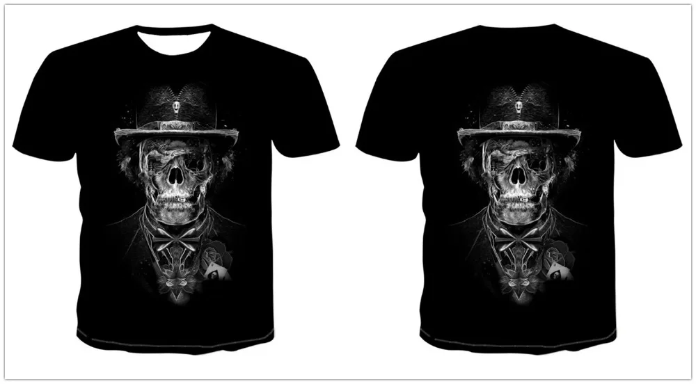 Футболки в стиле панк с 3D черепом, топы, Повседневная Уличная одеж...