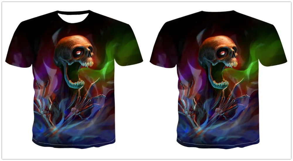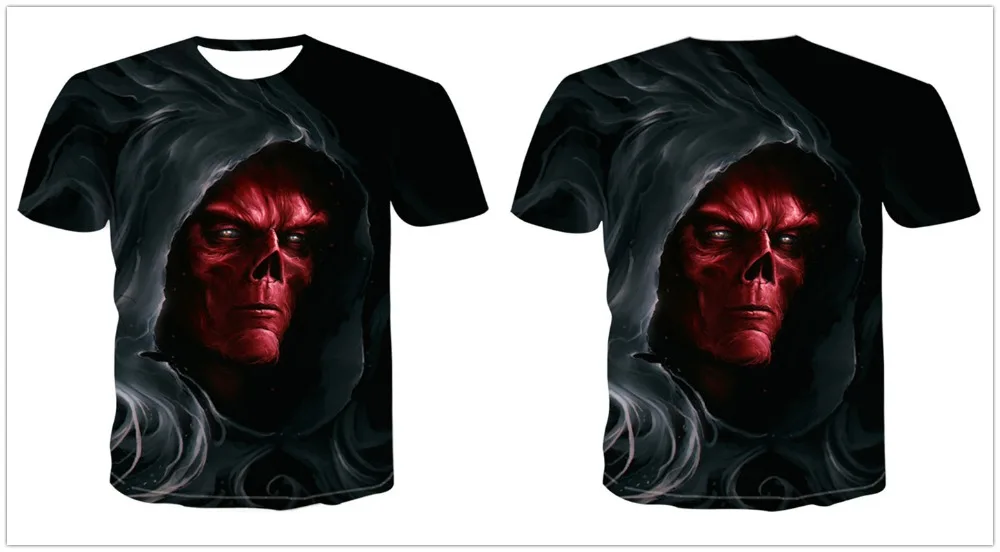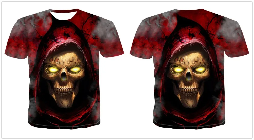 Мужская футболка с рисунком черепа, демона, 3D топы ужасов, летняя ...