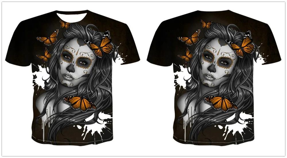 Мужские и женские футболки с 3D-принтом в виде черепа, уличная одеж...
