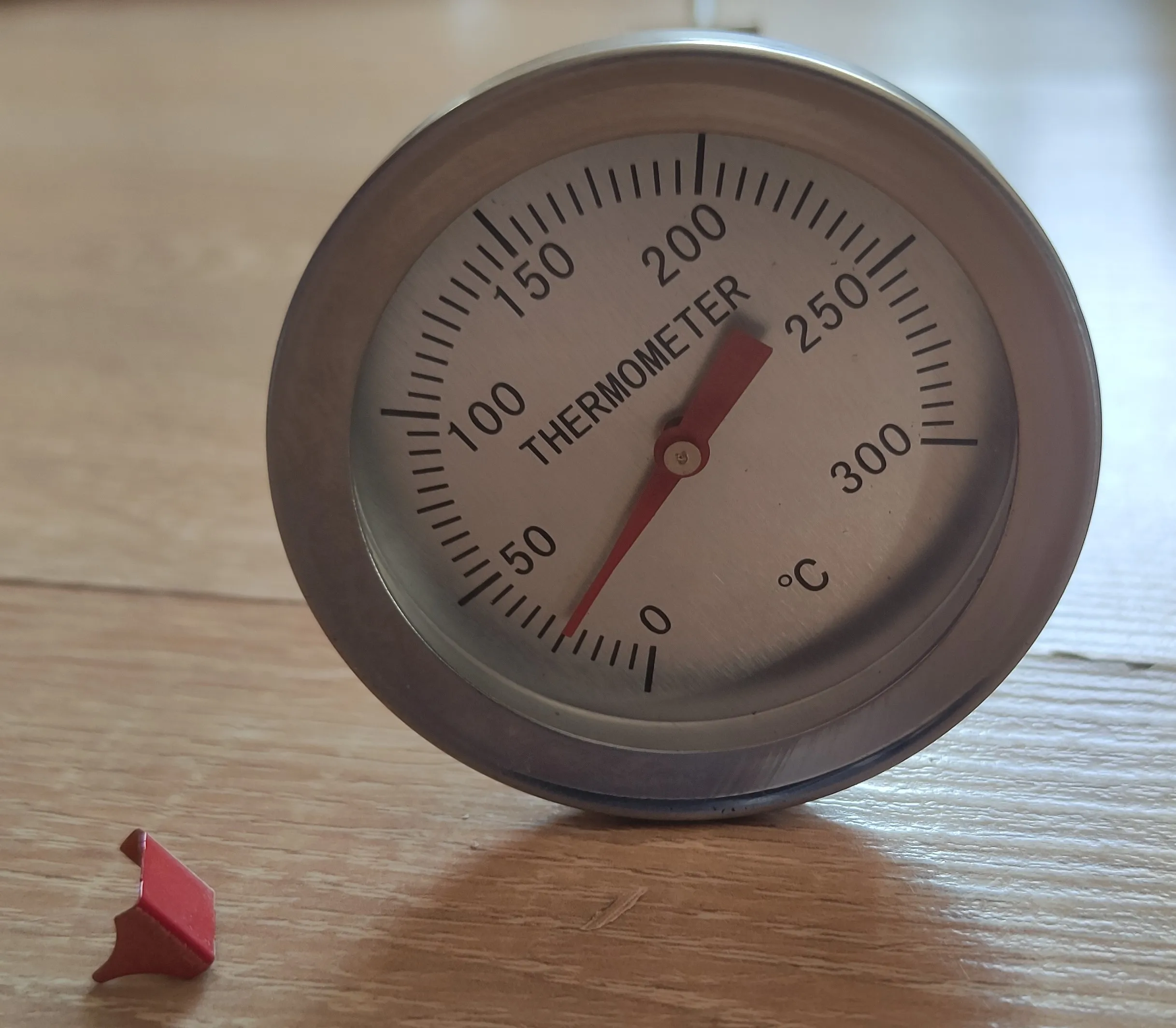 Пришёл погнутым стержень... Красный флажок на ободе циферблата с указанием фиксации температуры пришёл отваленным в пакете... Обратно не крепится - зазор больше миллиметра, в общем полное фуфло этот флажок, на него не рассчитывайте.