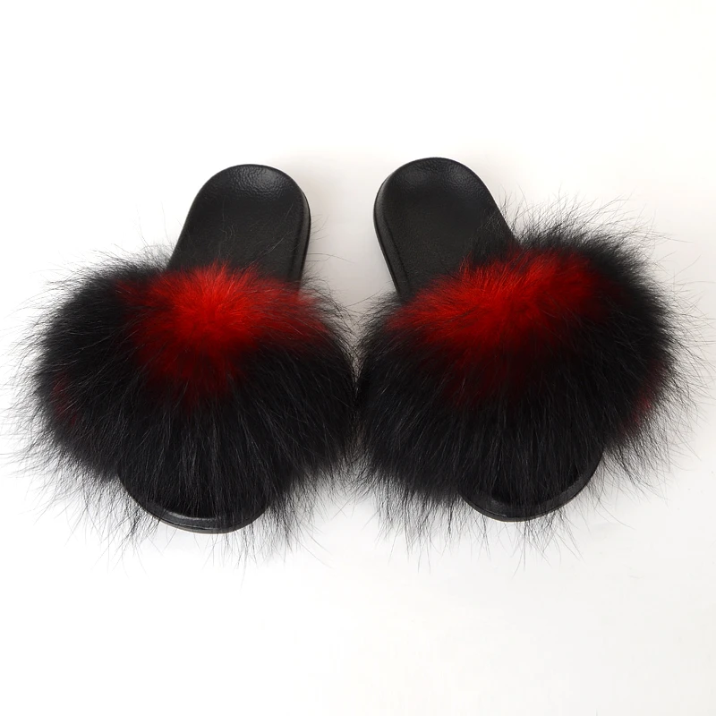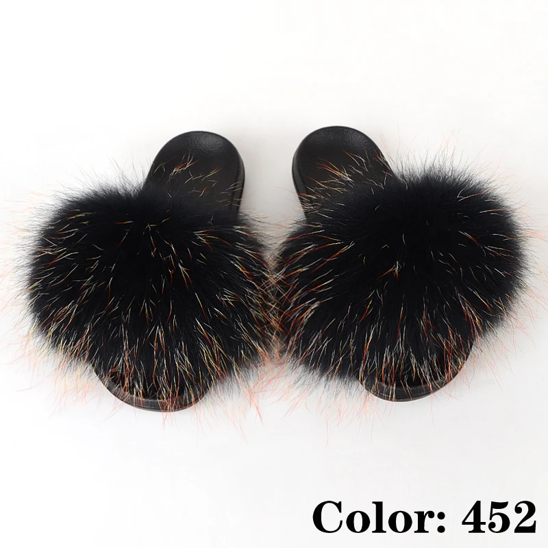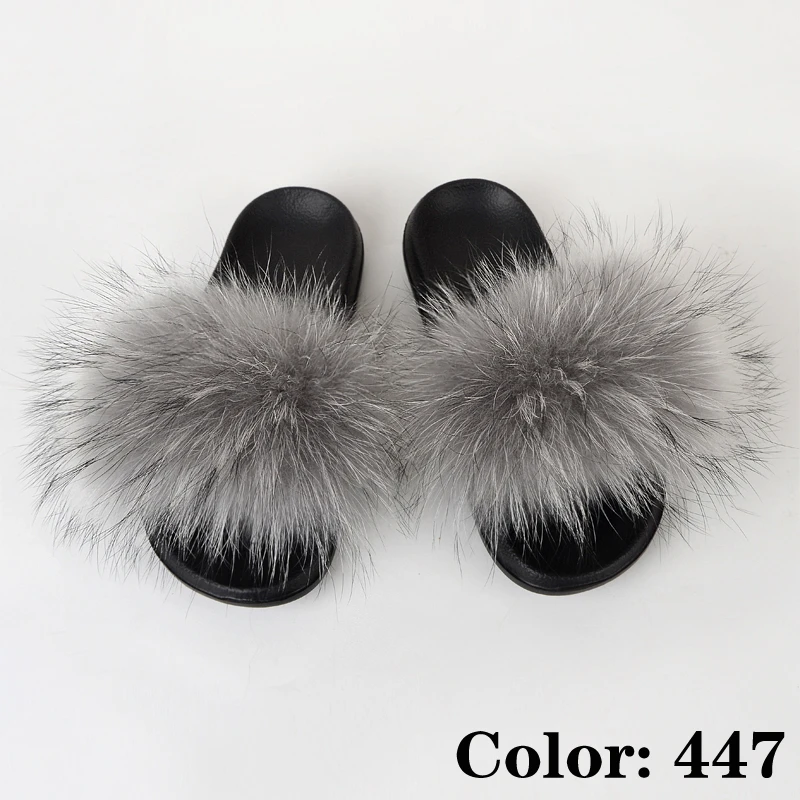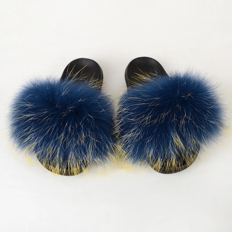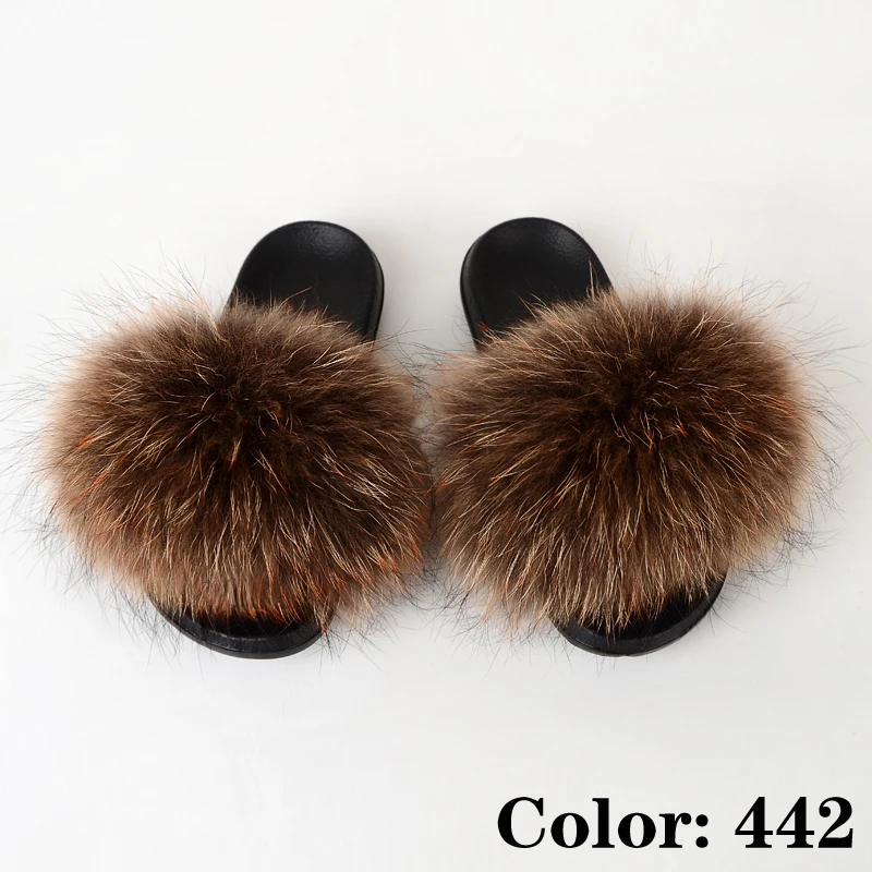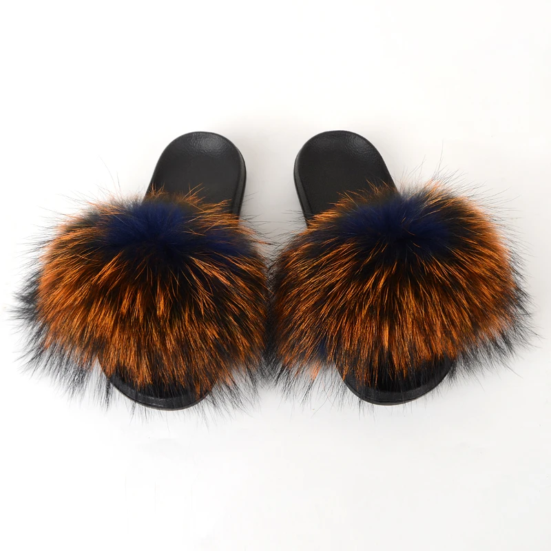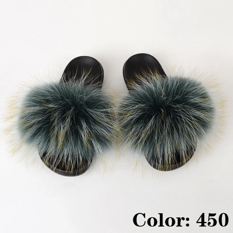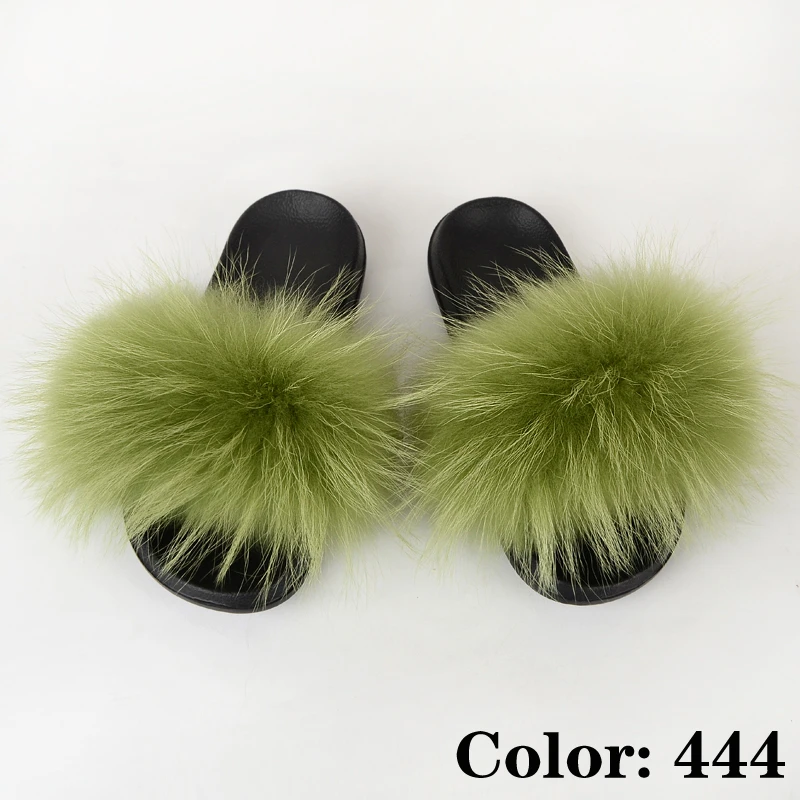 Сланцы женские с мехом енота, домашние меховые шлепанцы, пушистые летние сандалии, мюли, плюшевые шлепанцы, роскошная домашняя обувь, 2020