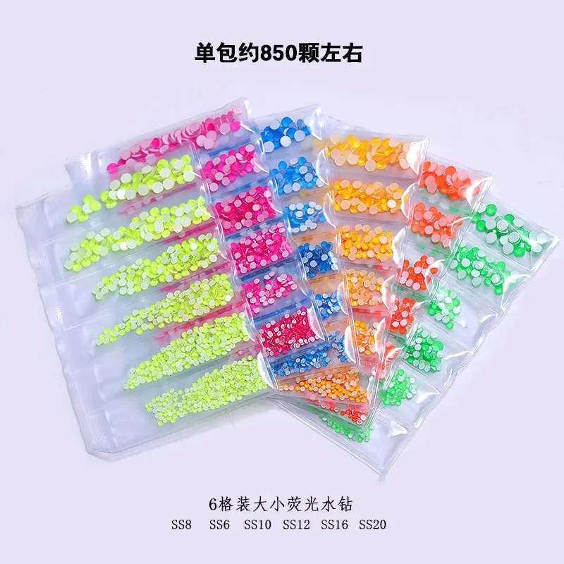 6 сеток с плоской спинкой блестящие флуоресцентные Стразы для ногтей многоразмерные очаровательные бриллиантовые украшения для ногтей SS6-SS20 аксессуары из драгоценных камней