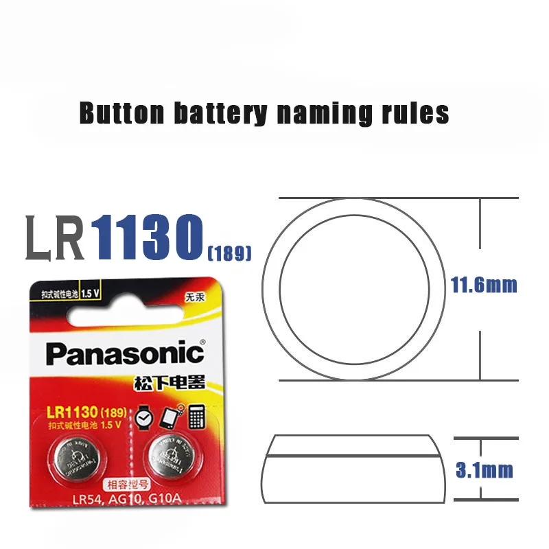 Оригинальные щелочные батареи PANASONIC LR1130 189 1,5 в AG10 LR54 SR1130W, батарейки 0% Hg для пульта дистанционного управления