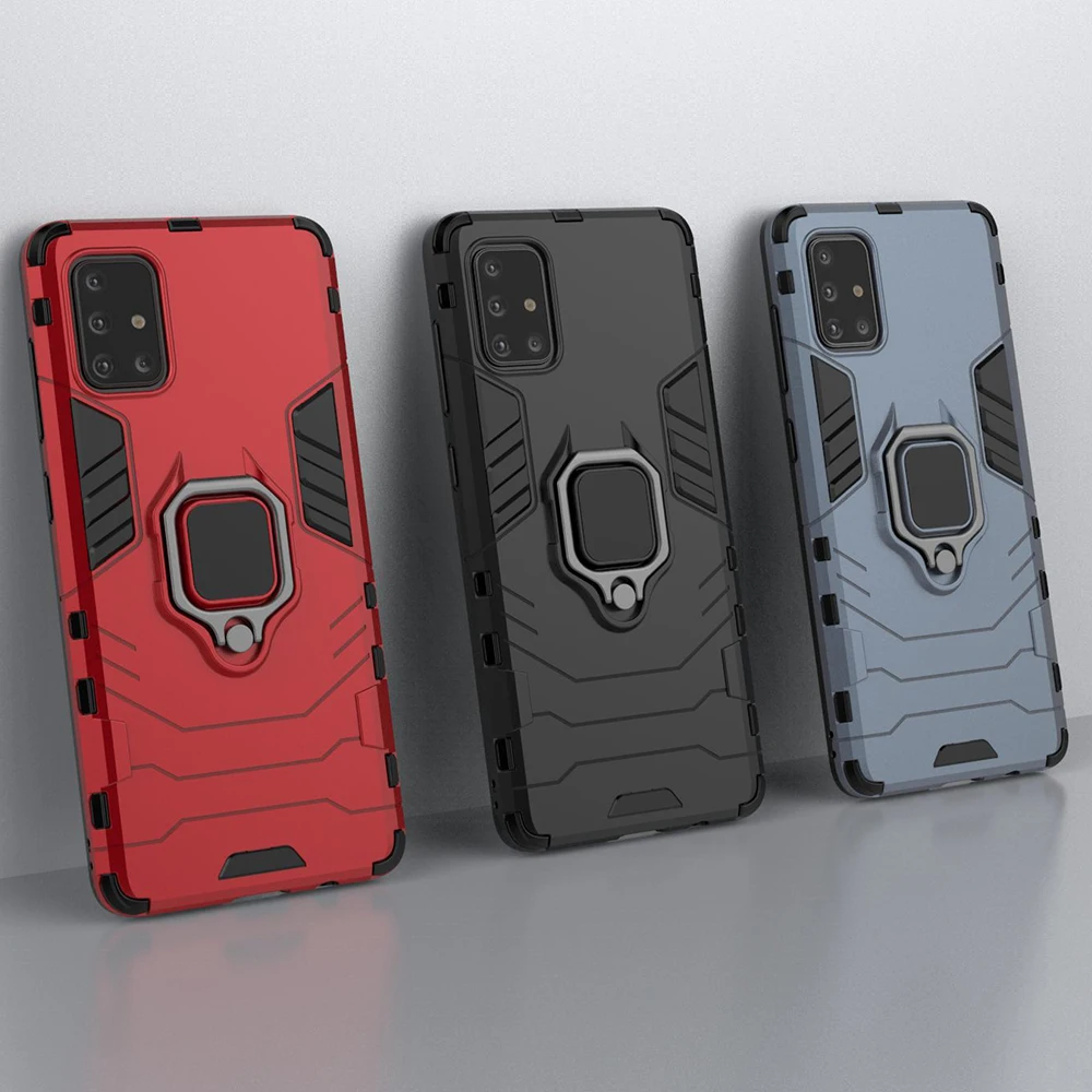 Чехол для Samsung Galaxy A71, армированный жесткий чехол из поликарбоната, металлический кольцевой держатель, чехол для телефона Samsung A 71, противоударный Усиленный бампер