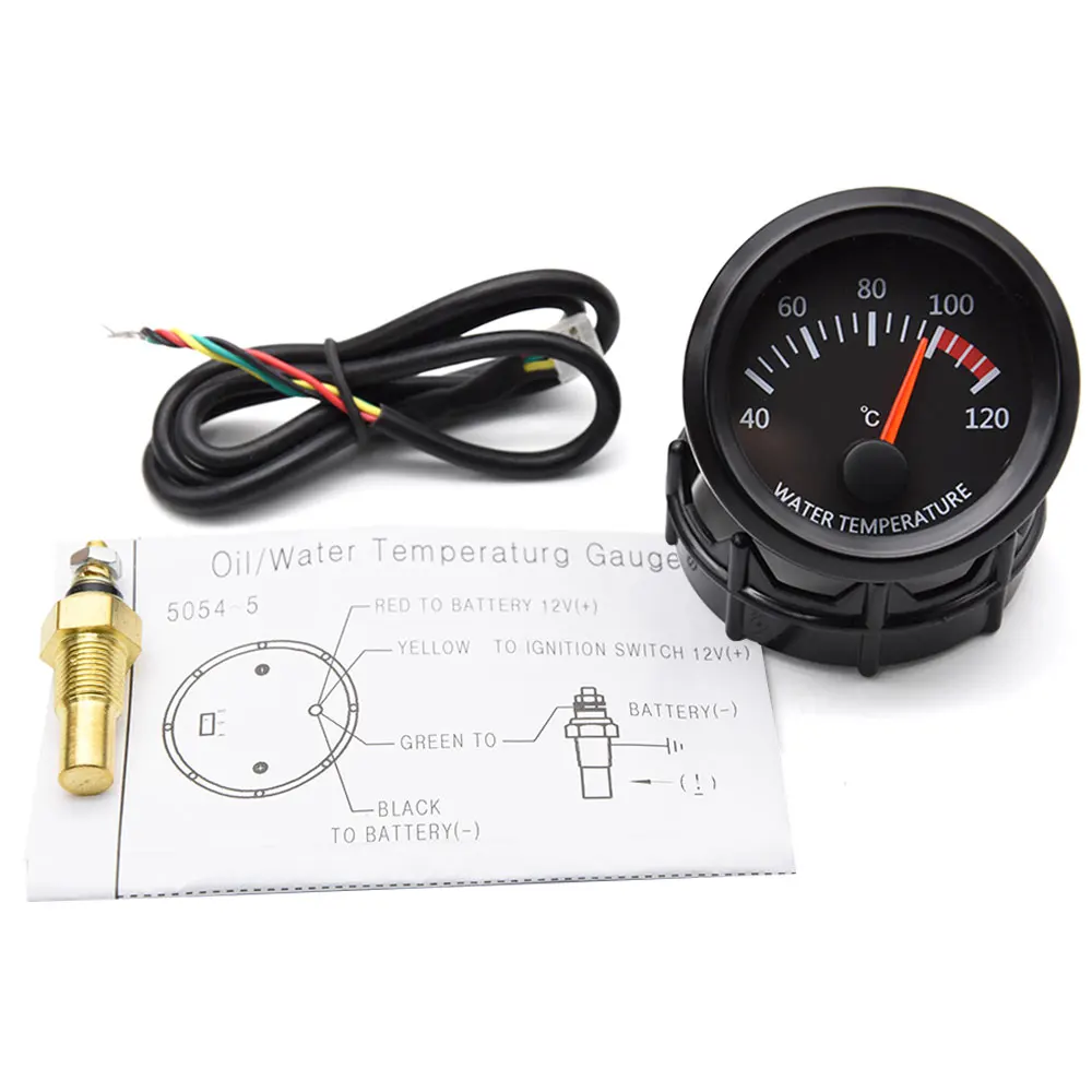 Датчик температуры воды 2 ''52 мм, белый светодиод 40-120 градусов Цельсия с датчиком температуры воды, адаптер 10 мм, термометр 1/8NPT для автомобиля