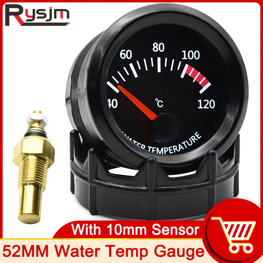 Датчик температуры воды, HD 2 дюйма, 52 мм, белый светодиод, 40-120 Цельсия, с датчиком температуры воды, адаптер 10 мм, термометр 18NPT для автомобиля