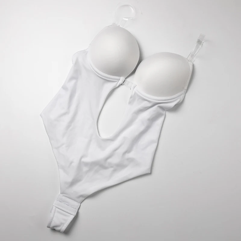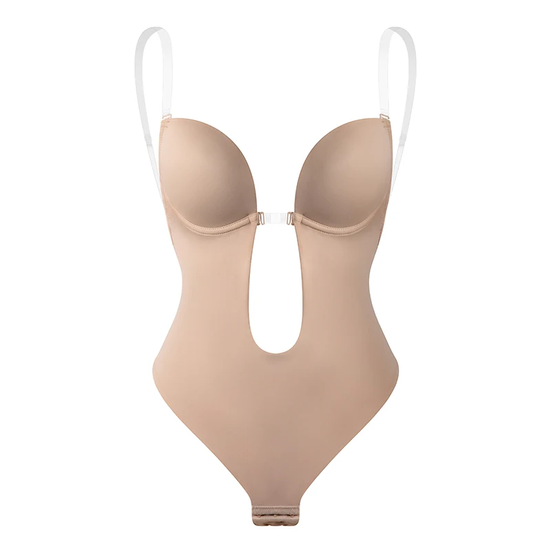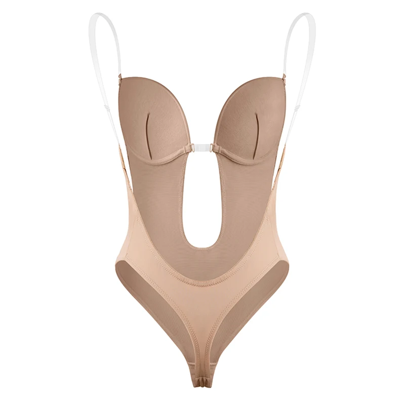 Женское корректирующее боди с V-образным вырезом и открытой спиной