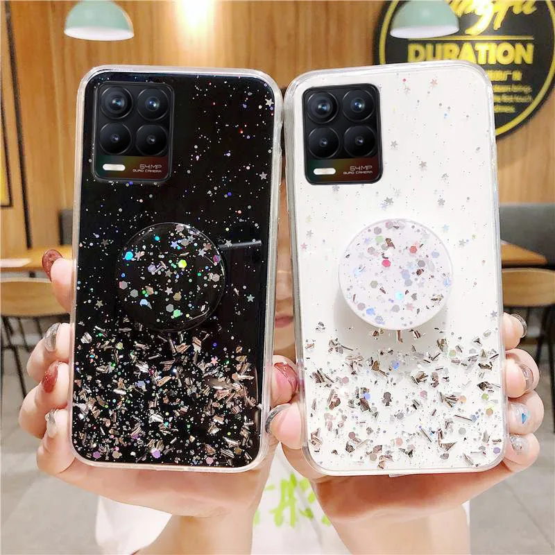Чехол Realme 8i для Realme 8 Pro Чехол Блестящий сверкающий чехол для Oppo Realme 7 6 GT C25 A94 4G A9 2020 A52 A72 круглая скобка