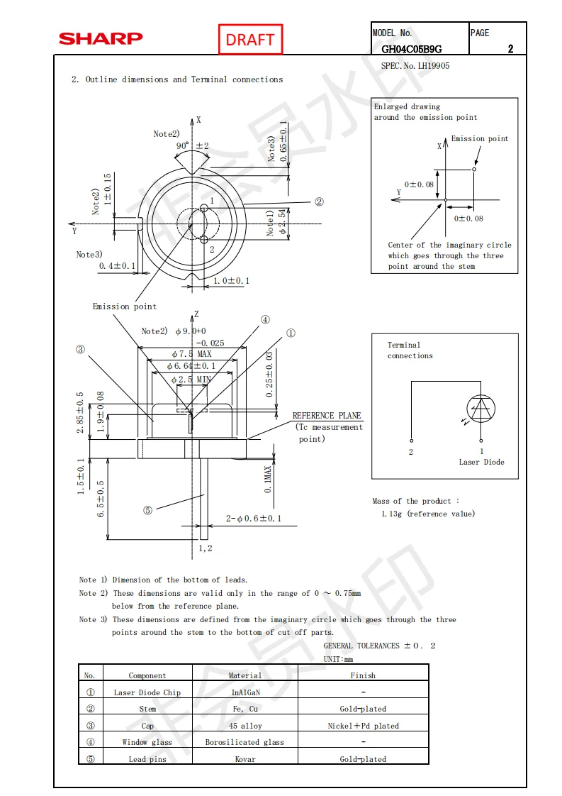 Диод лазерный SHARP GH04C05B9G, 9 мм, синий, 440 нм, 445 нм, 5 Вт