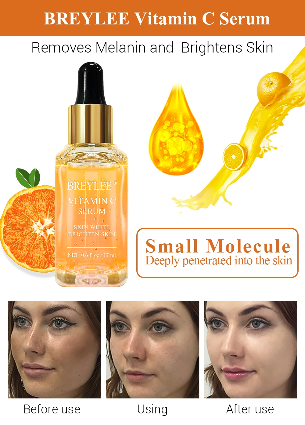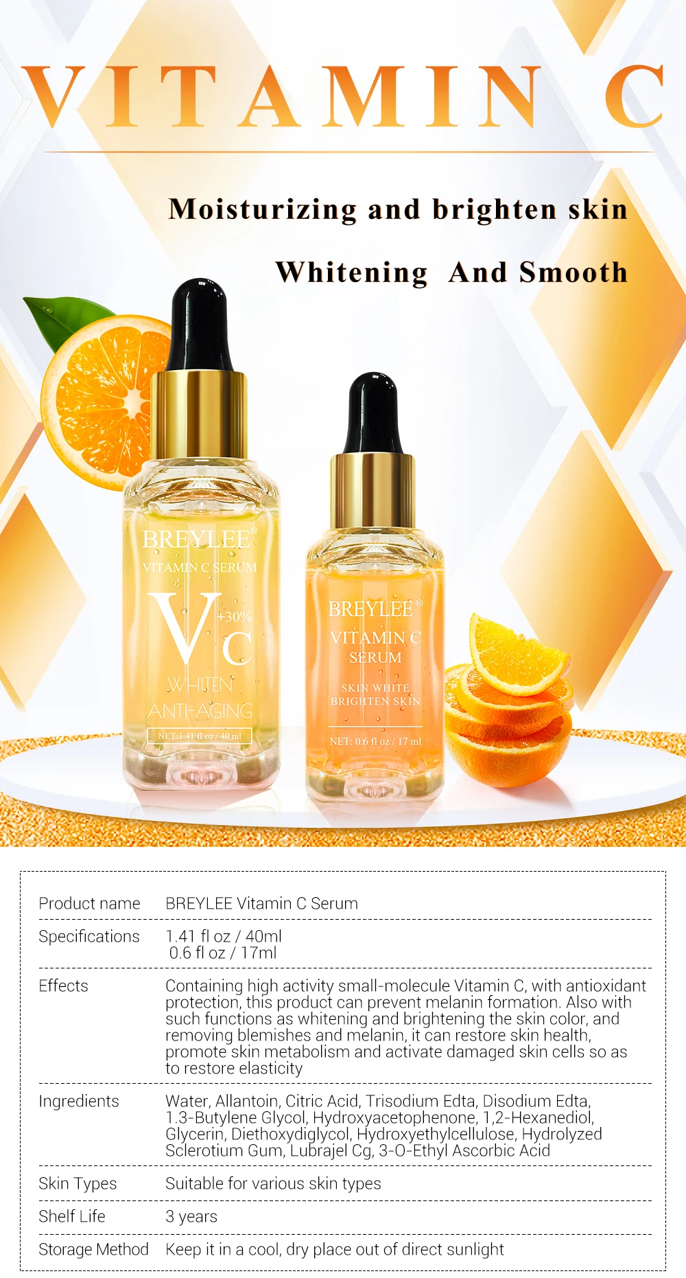 Отбеливающая Сыворотка для лица BREYLEE с витамином С, увлажняющая эссенция для лица, для удаления темных пятен веснушек, 2 шт.