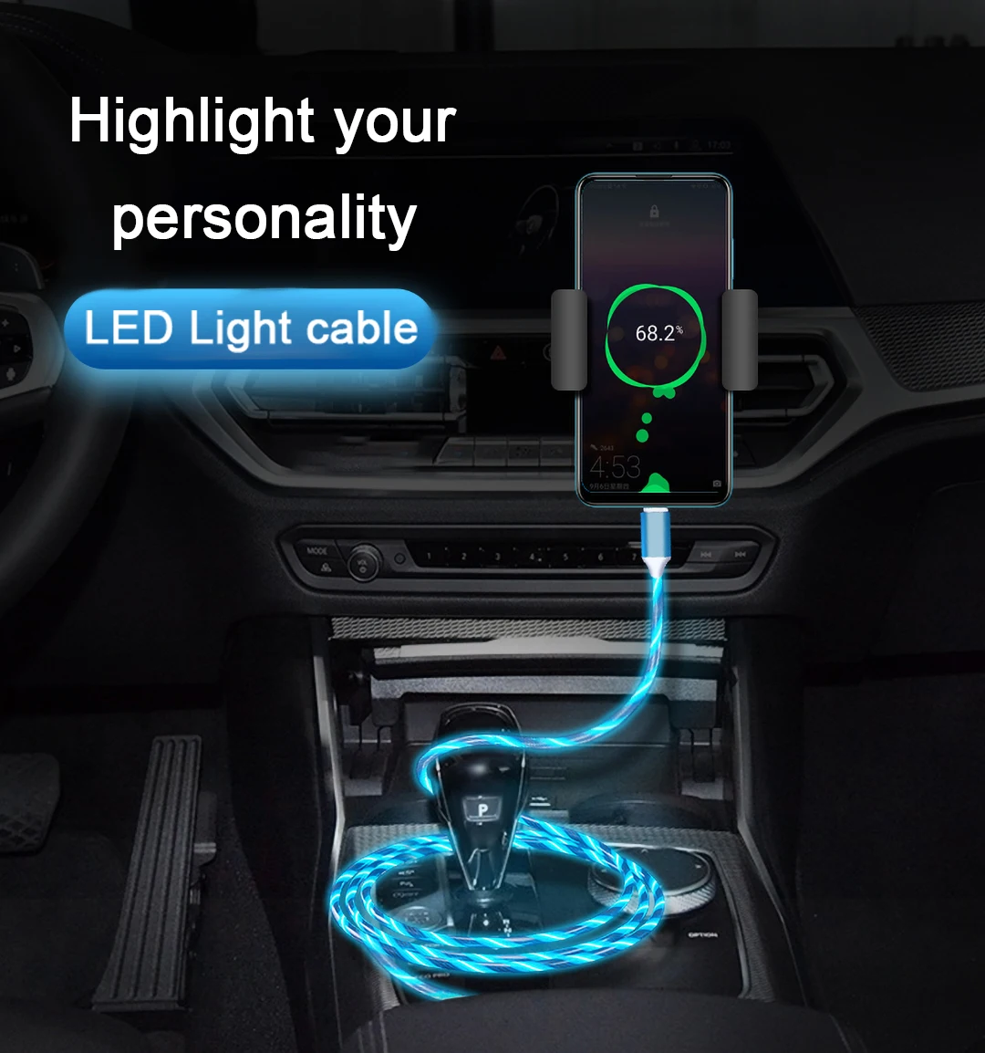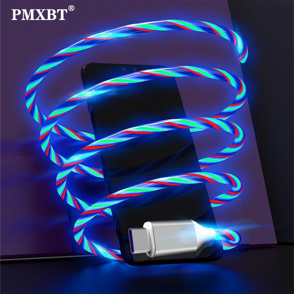 Кабель USB Type-C с подсветкой для Samsung S10, Huawei, Xiaomi, светящийся мобильный телефон