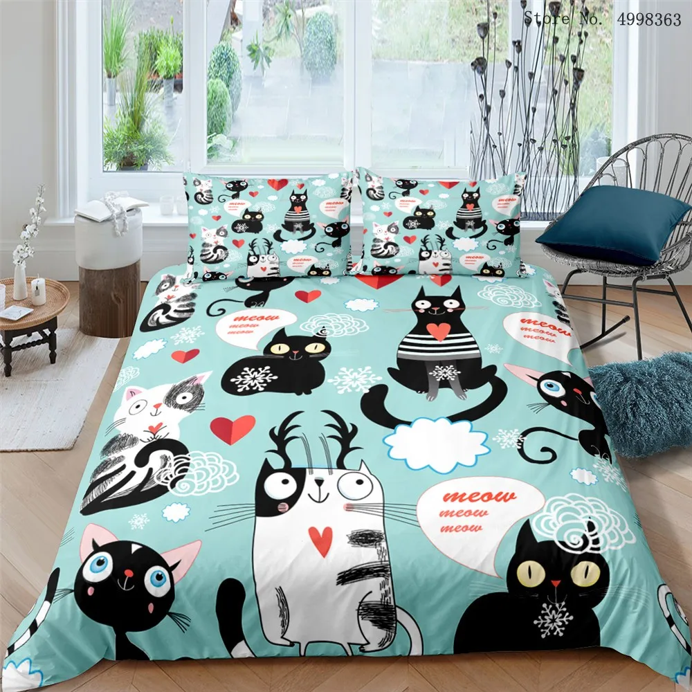 Комплект постельного белья наволочка с рисунком животных кошек 23 шт. Комплект постельного белья роскошный пододеяльник из микрофибры детское постельное покрывало для спальни
