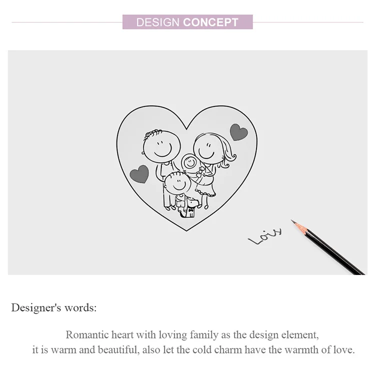 Bamoer подлинный 925 пробы Серебряный Любовь Семья Сердце Металличе...