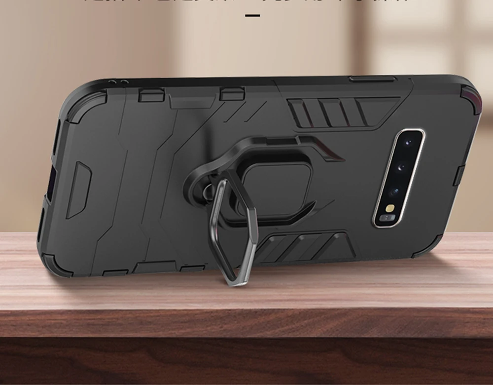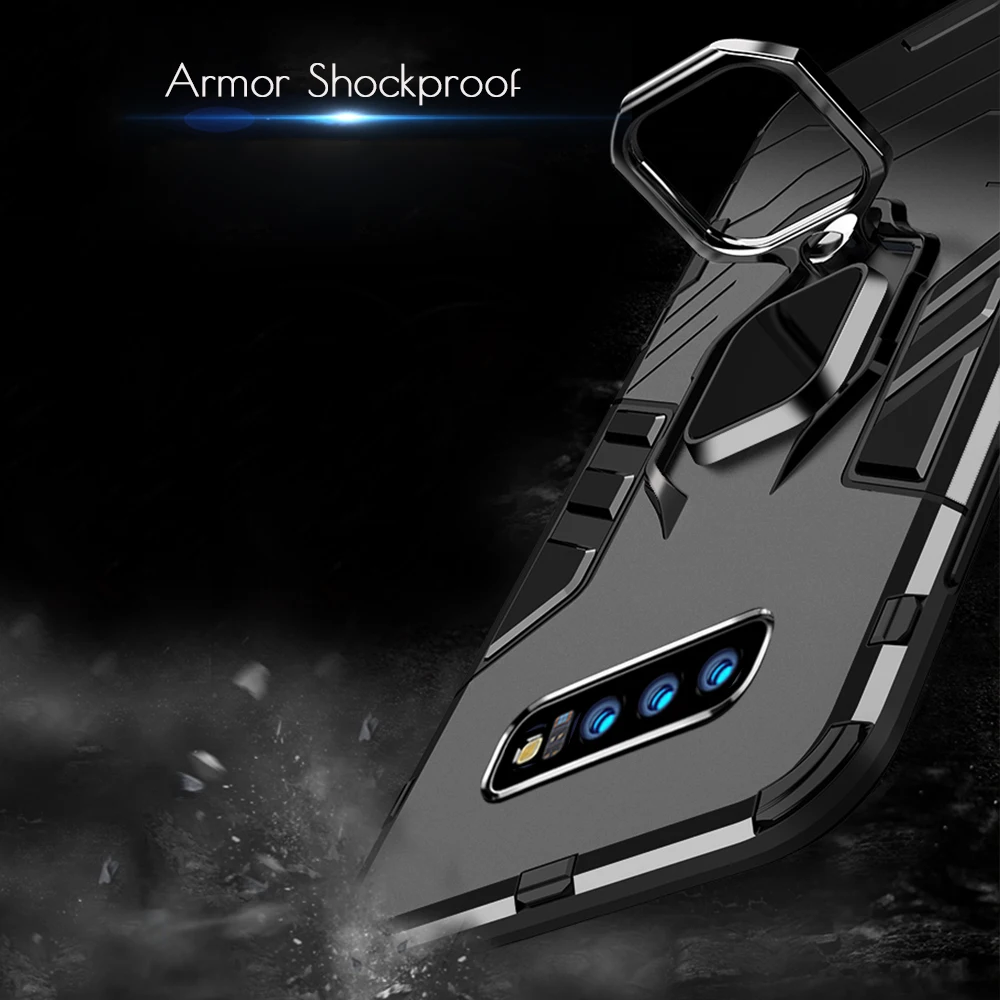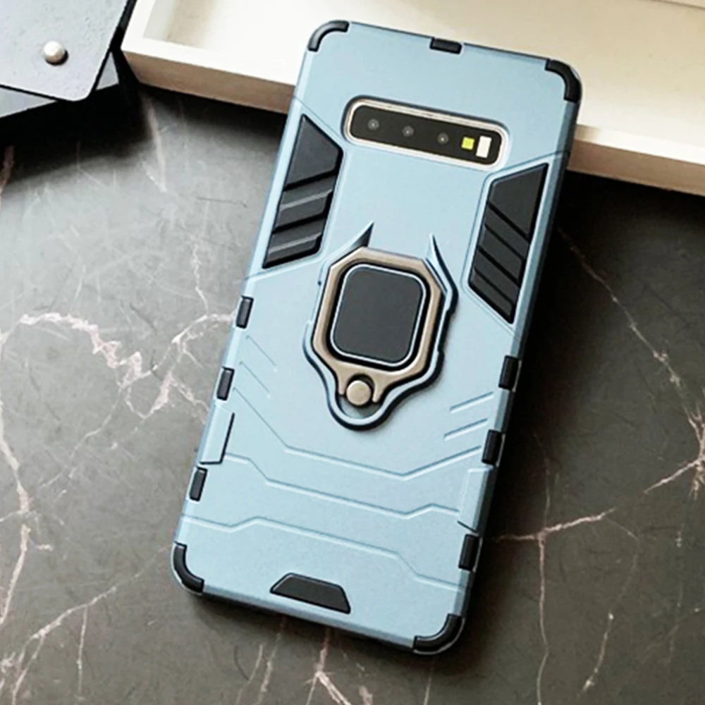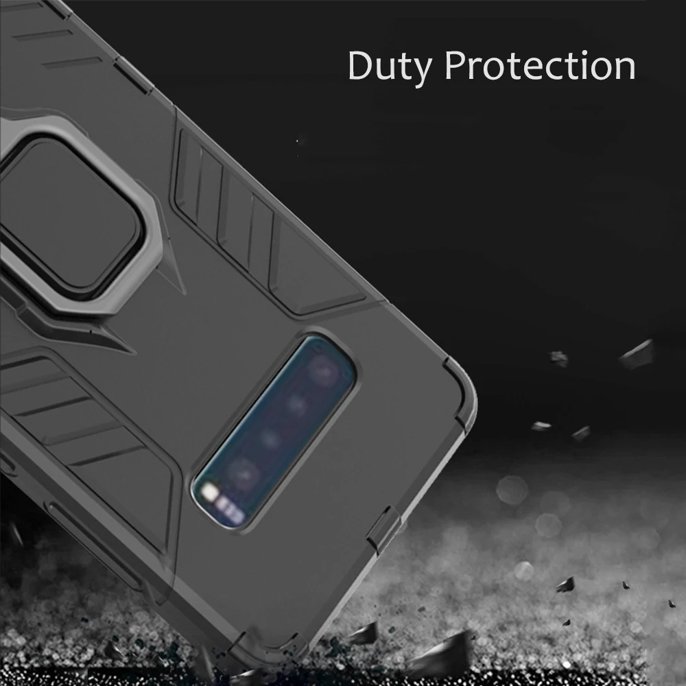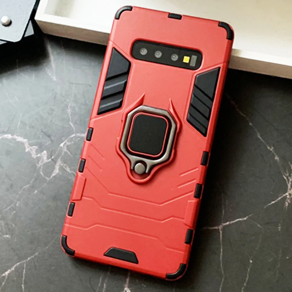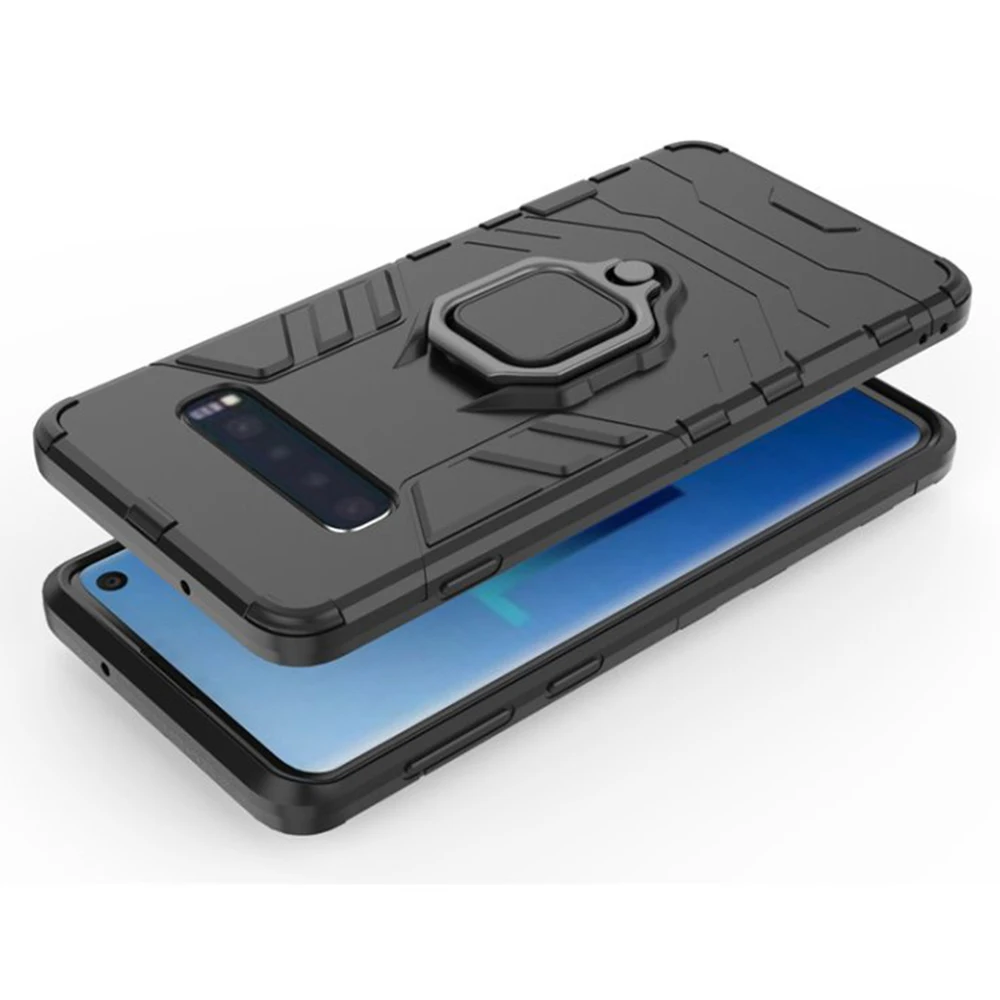 Чехол для Samsung Galaxy S10, армированный чехол из поликарбоната с кольцом-держателем на палец, чехол для телефона Samsung S 10, S10e, S10 Plus, чехол, бампер с ободом из ТПУ