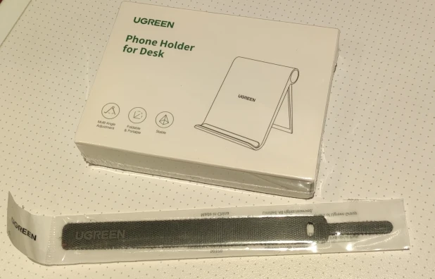 Доставка в Мск 18 дней. Упаковано добротно: фирменная коробка в фирменный пересыльный пакет, и сверху ещё один почтовый пакет. В целом можно использовать в качестве скромного презента, так как упаковка весьма презентабельна)) Бескомпромиссно высокое качество – это дело обычное для Ugreen. Подставка выполнена из матового шероховатого пластика, ножка регулируется умеренно туго и в достаточно широком диапазоне углов наклона, есть резиновая контактная прокладка, чтобы корпус устройств не затирался и не царапался. В качестве бонуса традиционная липучка-органайзер)) скоро уже весь ими обмажусь)))
