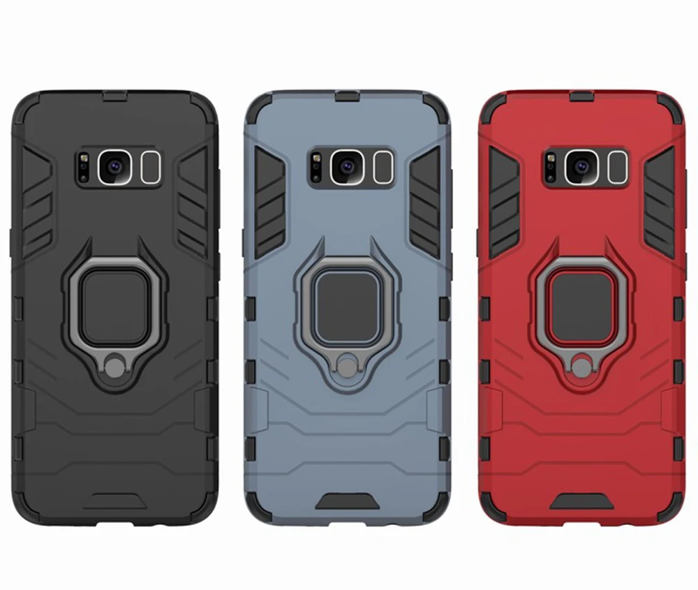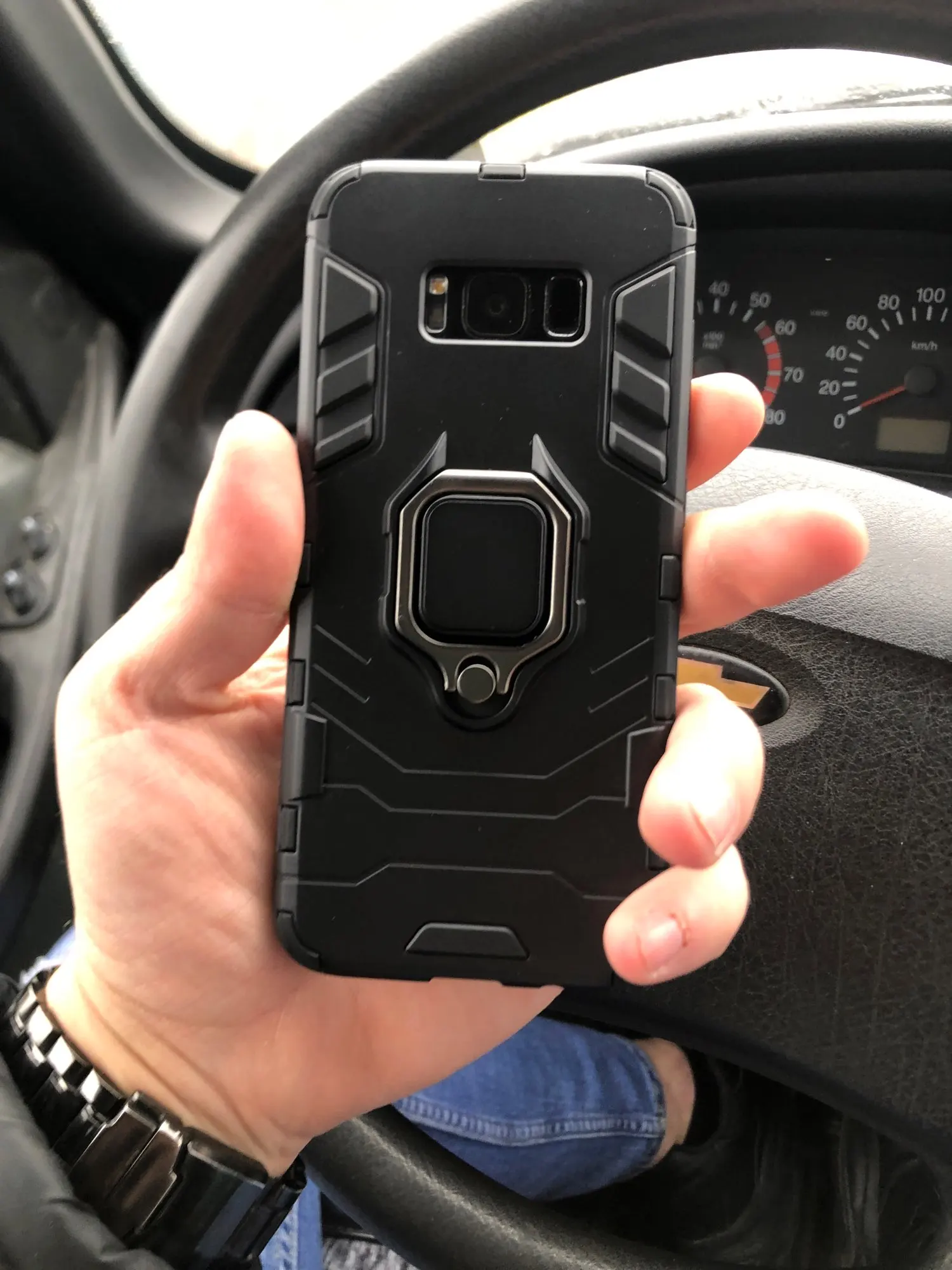 Чехол для Samsung Galaxy S8 +, армированный чехол из поликарбоната, металлическое кольцо-держатель, чехол для телефона Samsung S 8 S8 Plus, противоударный жесткий бампер