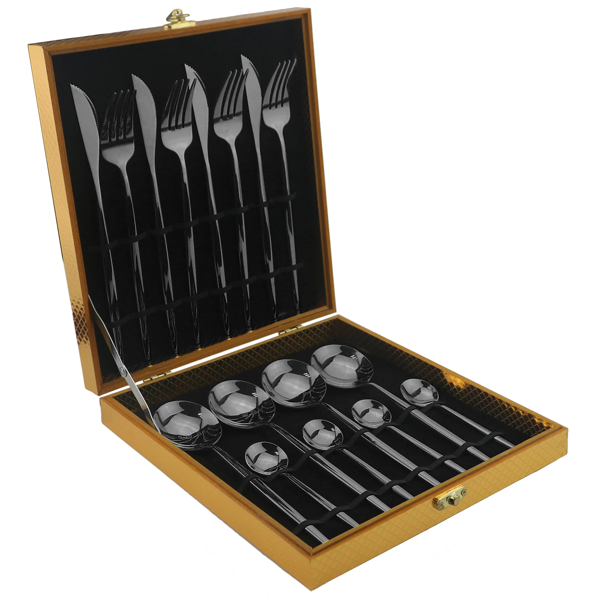 Набор столовых приборов из нержавеющей стали, черного цвета, 24 шт.