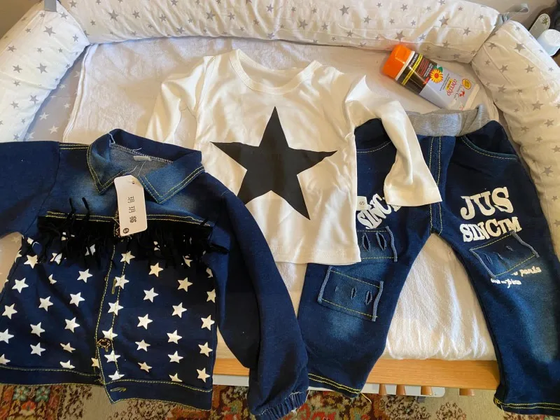 Размер S обхват груди = 52 см, длина = 36 см, брюки = 47 см, рекомендуется для 9-12 месяцевРазмер M Обхват груди = 54 см, длина = 38 см, брюки = 49 см, рекомендуется для 18-24 месяцевРазмер L обхват груди = 56 см, длина = 40 см, брюки = 51 см, рекомендуется для 3 летРазмер XL обхват груди = 58 см, длина = 42 см, брюки = 53 см, рекомендуется для 4 лет