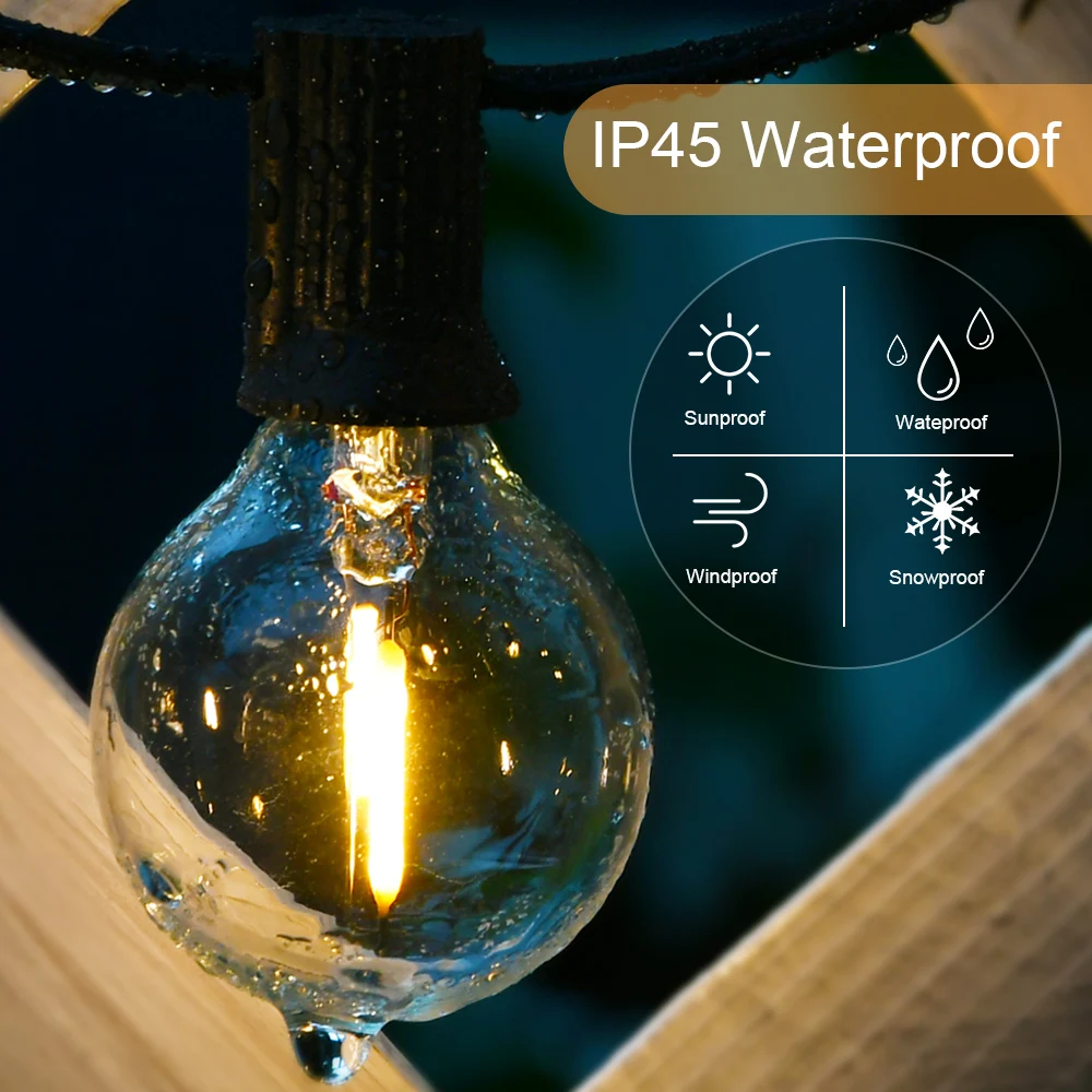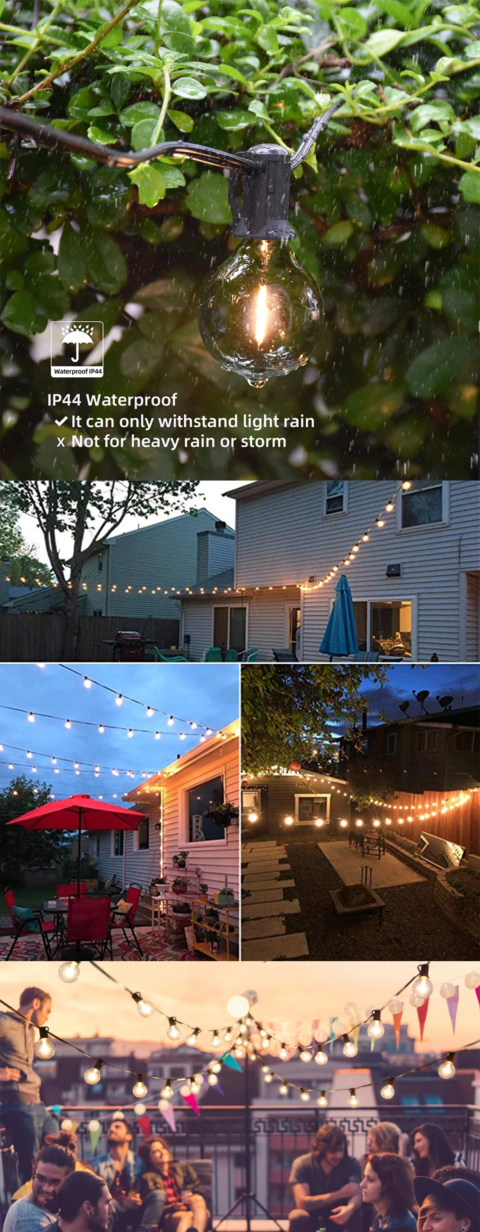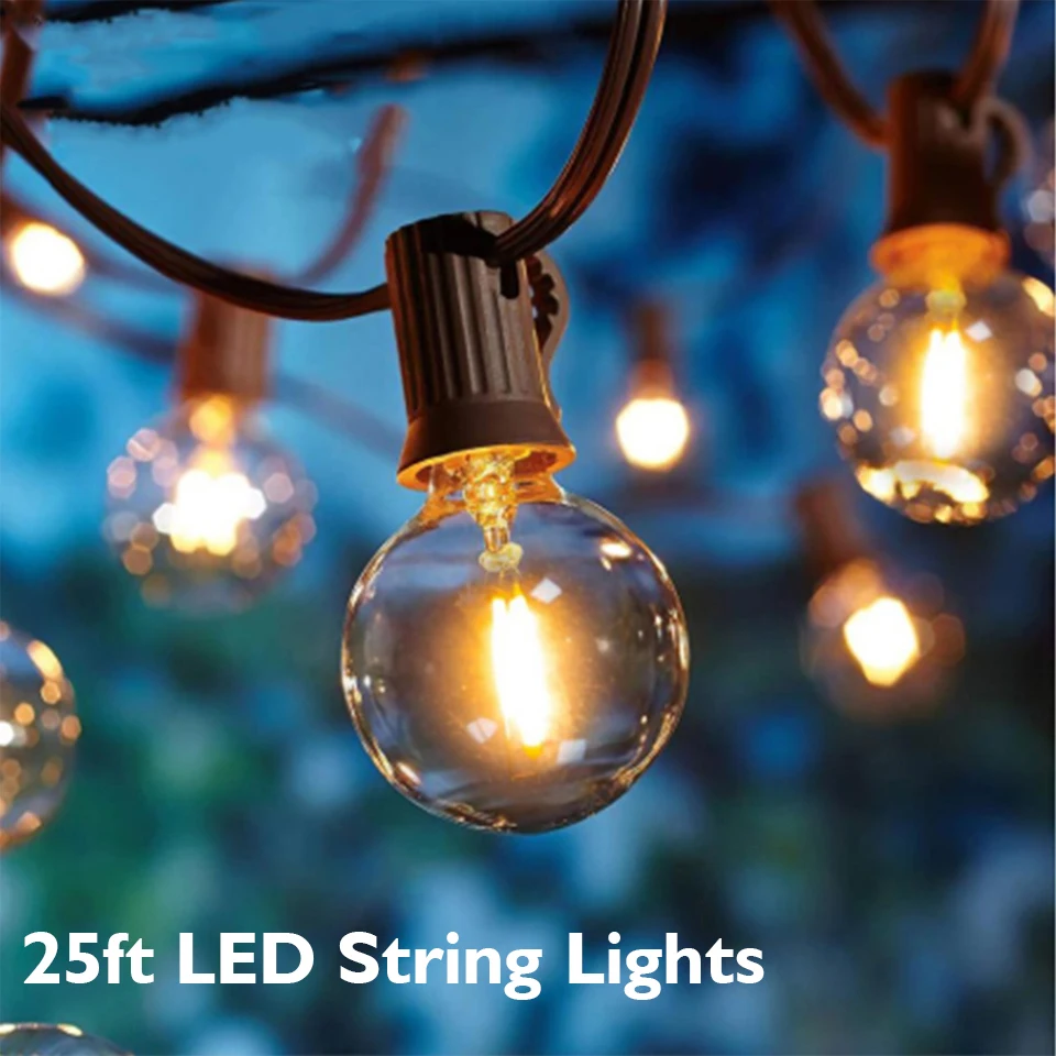 СВЕТОДИОДНАЯ Гирлянда G40 25 футов, 30 футов, 50 футов, с круглыми прозрачными лампочками, водонепроницаемая, IP44, подвесные светильники для внутреннего и наружного декора