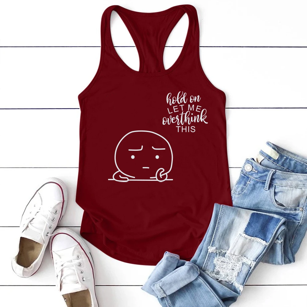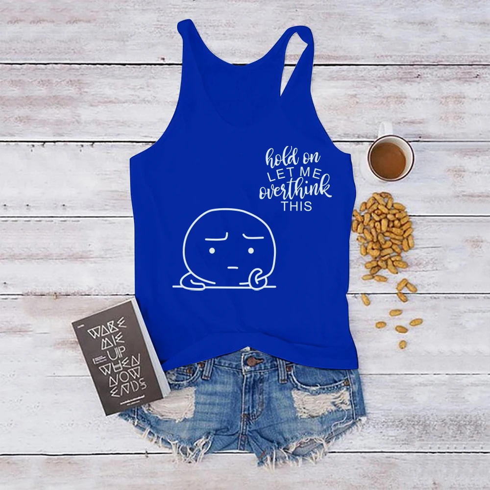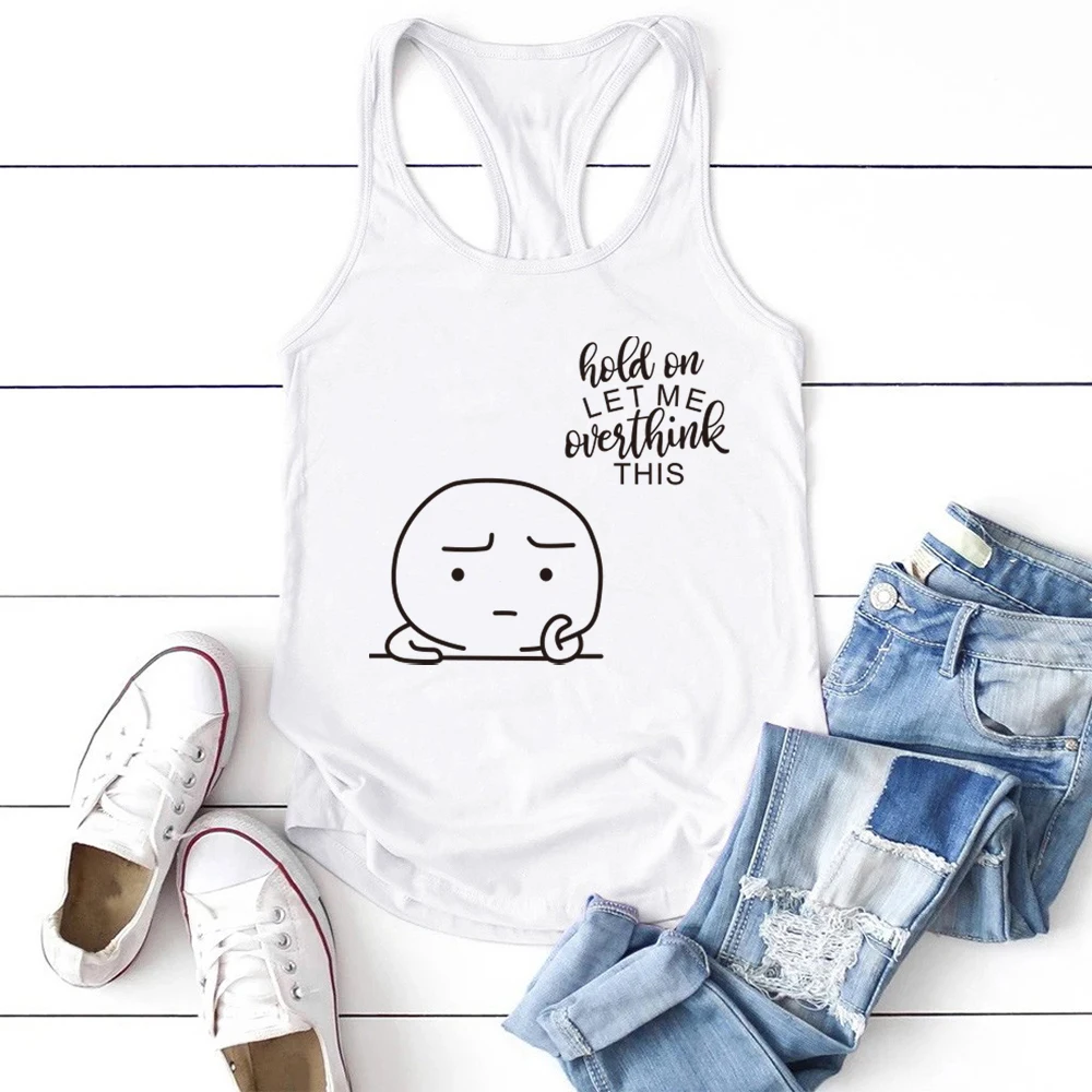 Коллекция 2020 года, повседневная майка с надписью Let Me Overthink This, летний топ без рукавов, графическая уличная одежда с круглым вырезом