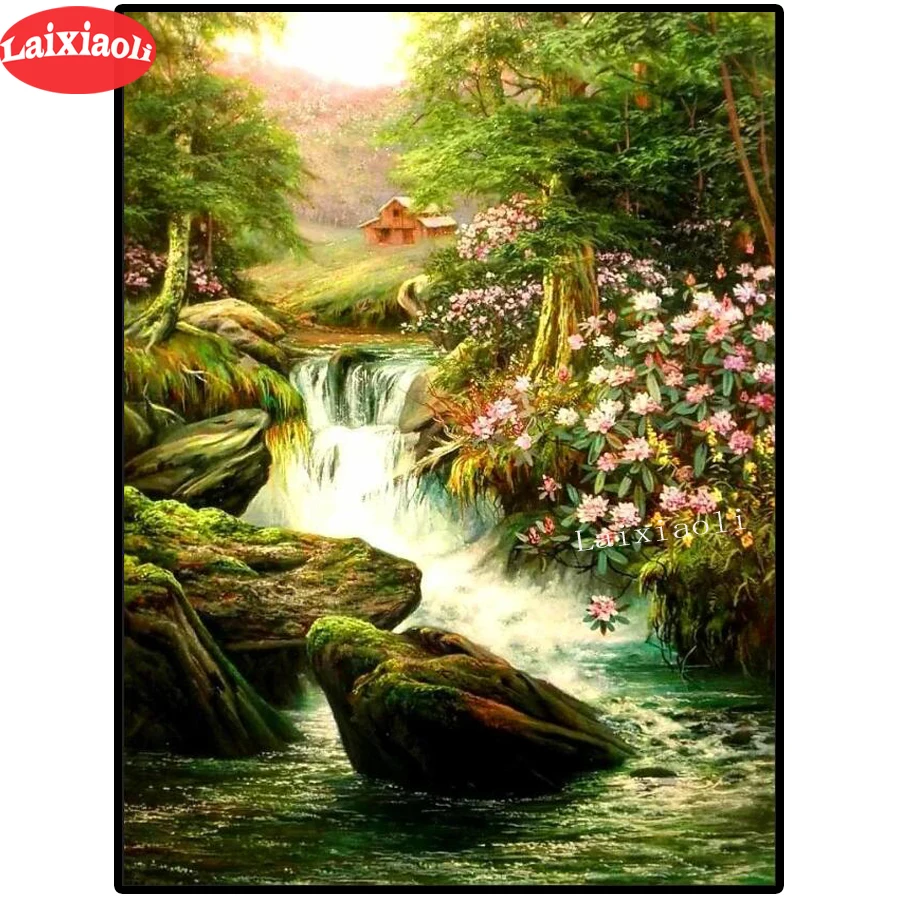 5D квадратные круглые камни полная Алмазная вышивка деревня водопад кристальная Алмазная картина Мозаика diy шаблон хобби рукоделие