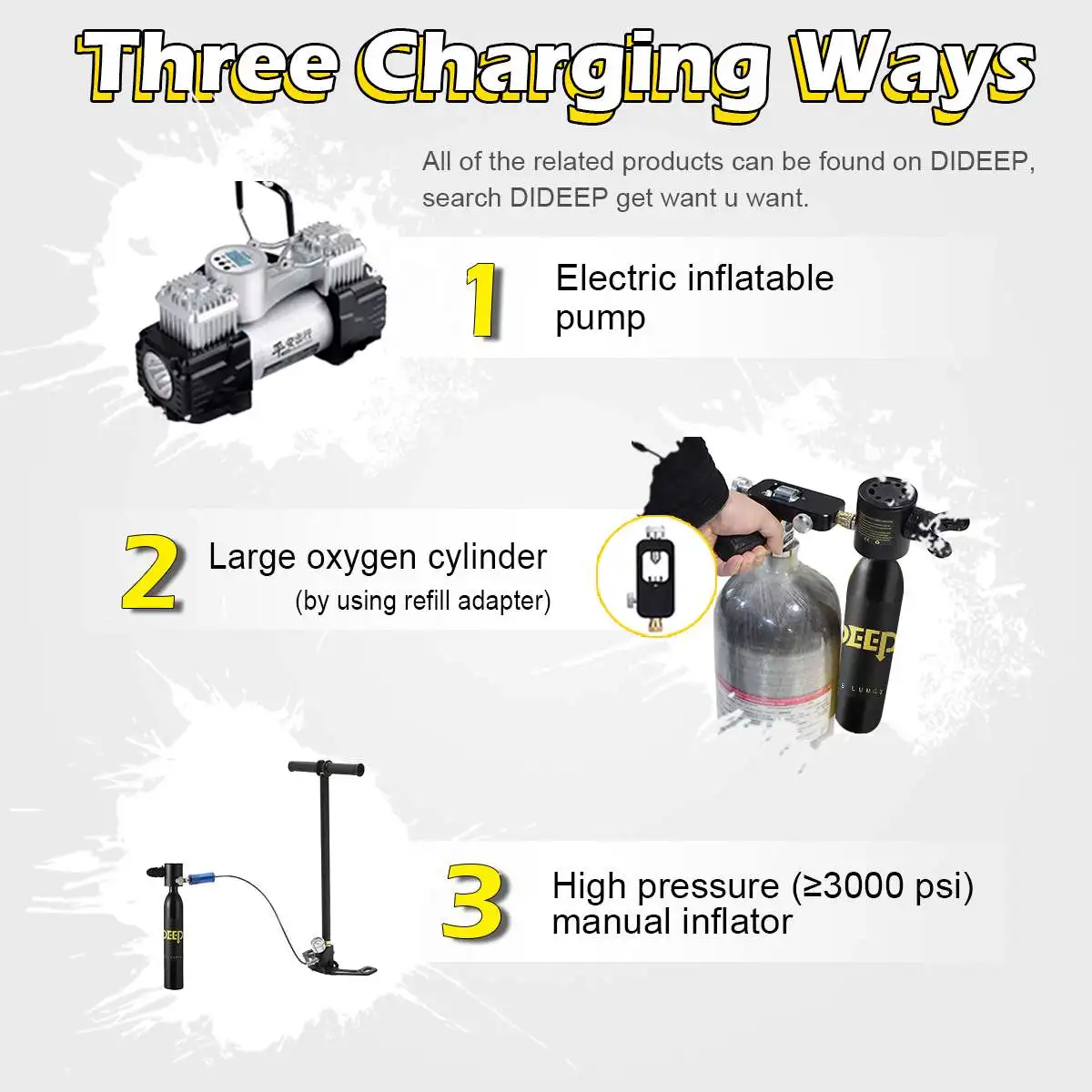 Кислородный резервуар DIDEEP Black, 0,5 л, ручной насос, снаряжение для дайвинга