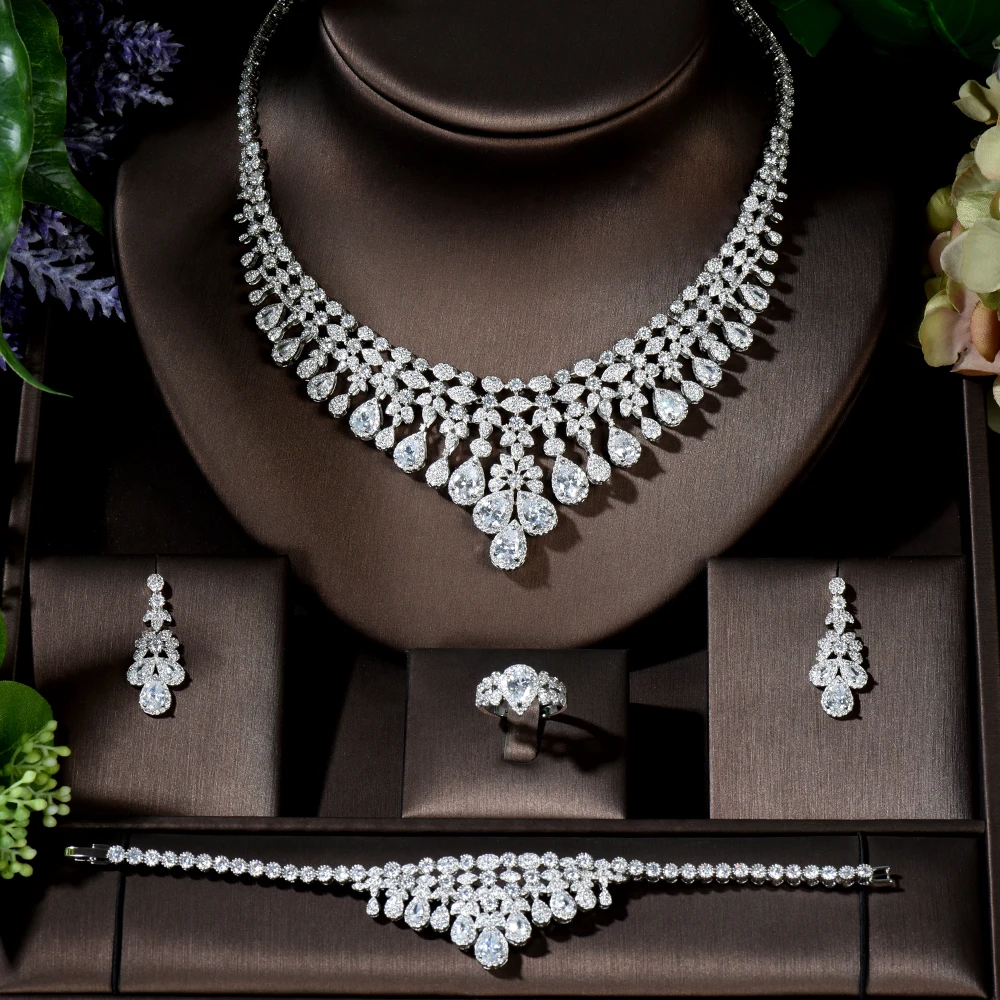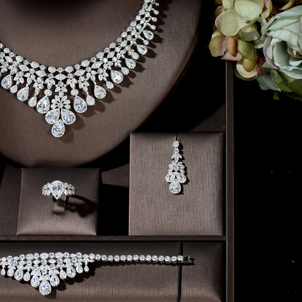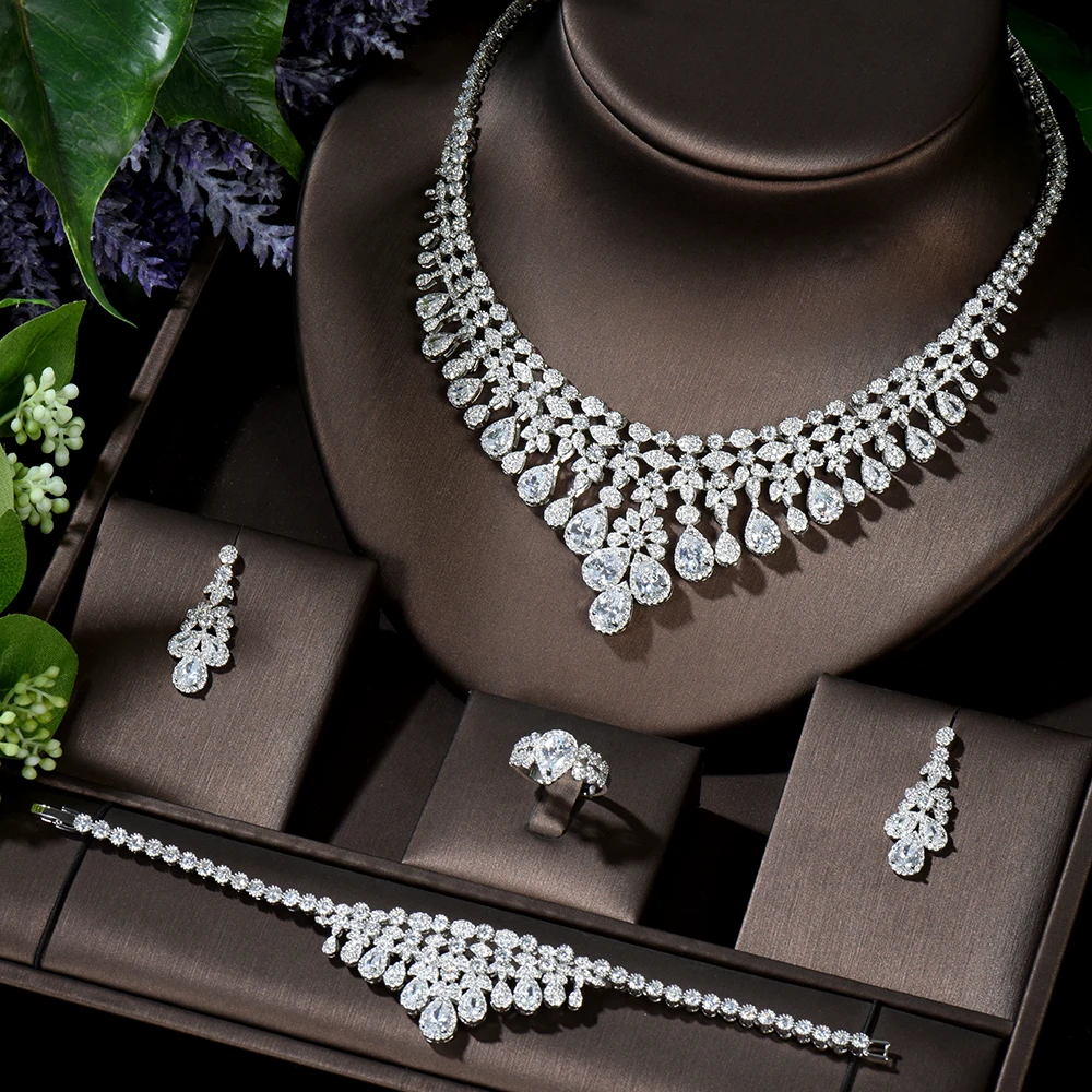 HIBRIDE роскошные 4 шт. Свадебные циркониевые ожерелья Серьги Кольц...