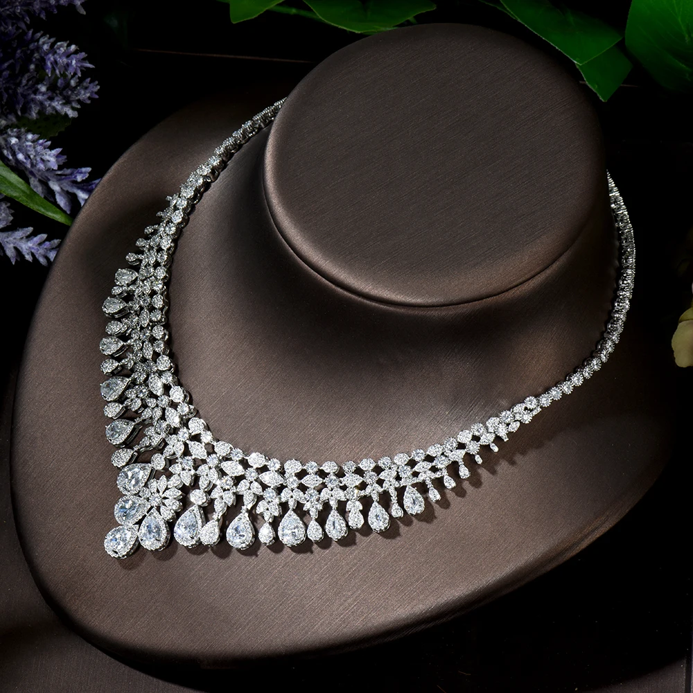 HIBRIDE Роскошный прозрачный кристалл циркония серьги и ожерелье на...