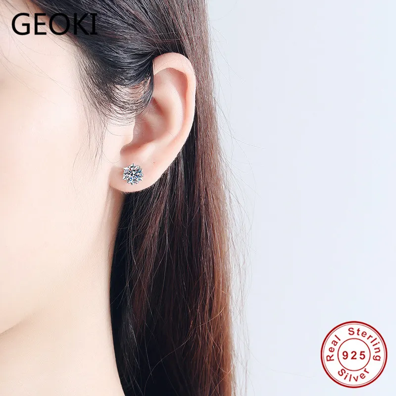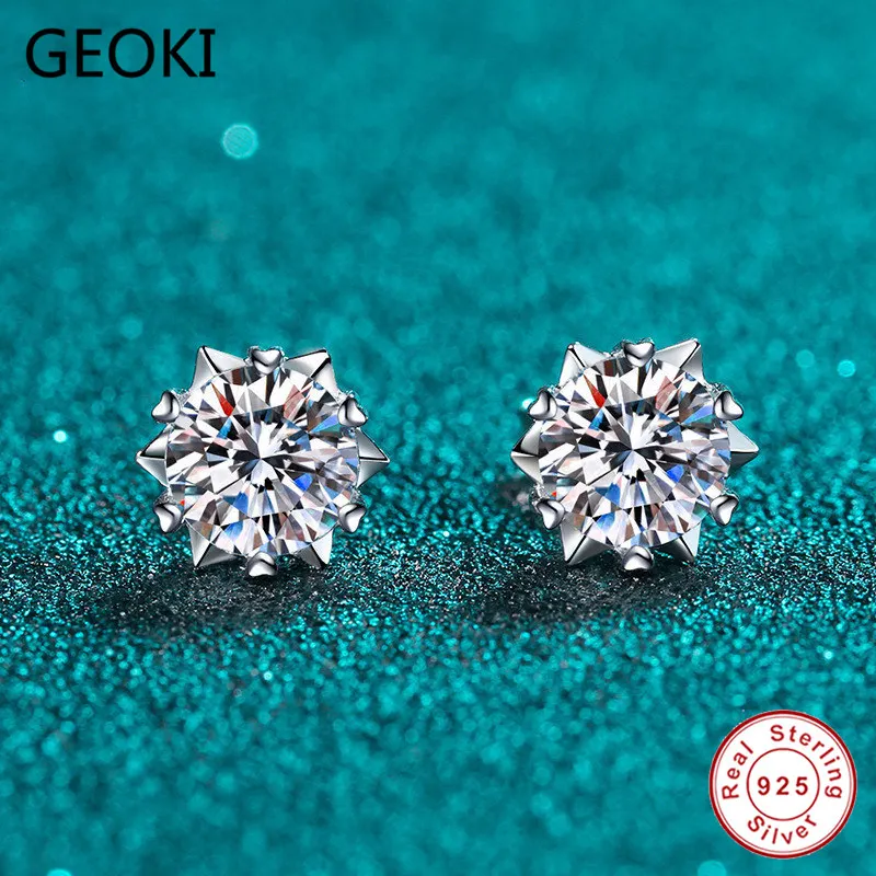 Серьги-гвоздики Geoki из серебра 925 пробы с муассанитами и снежинками Идеальной огранки 0,5-1 карат