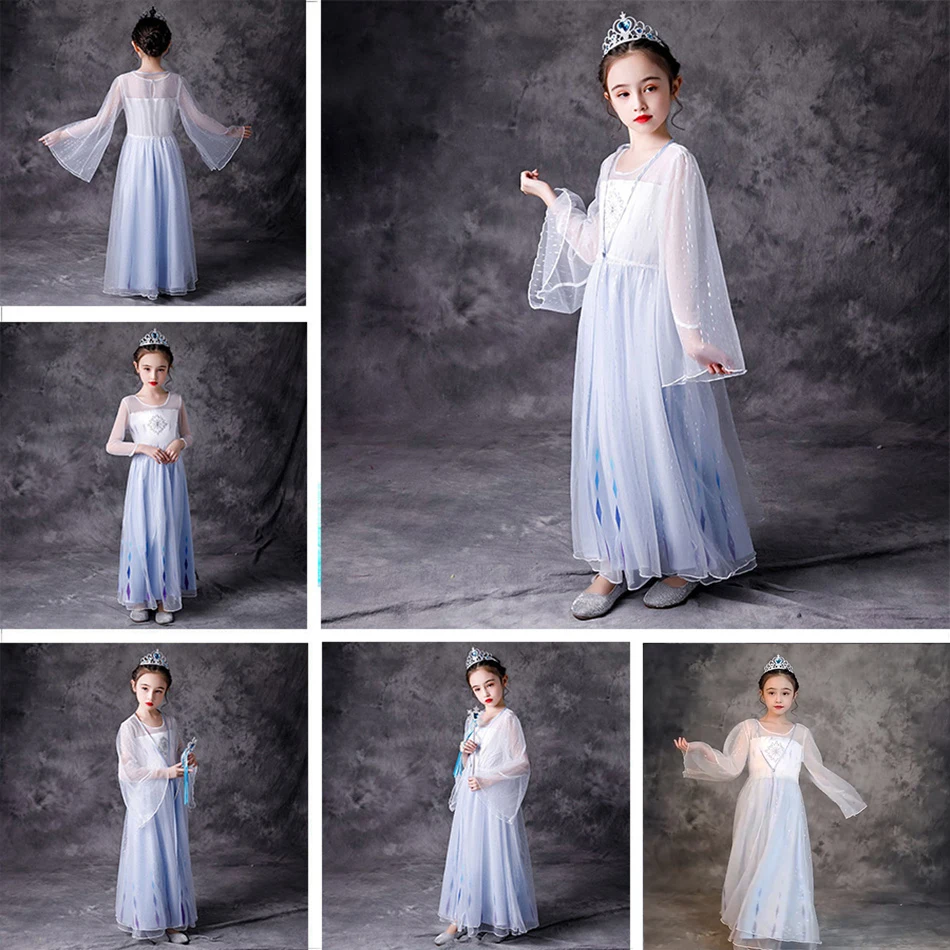 Платье принцессы Эльзы для косплея Снежной королевы, летнее платье, новинка, одежда для девочек, детская одежда, платье для ролевых игр