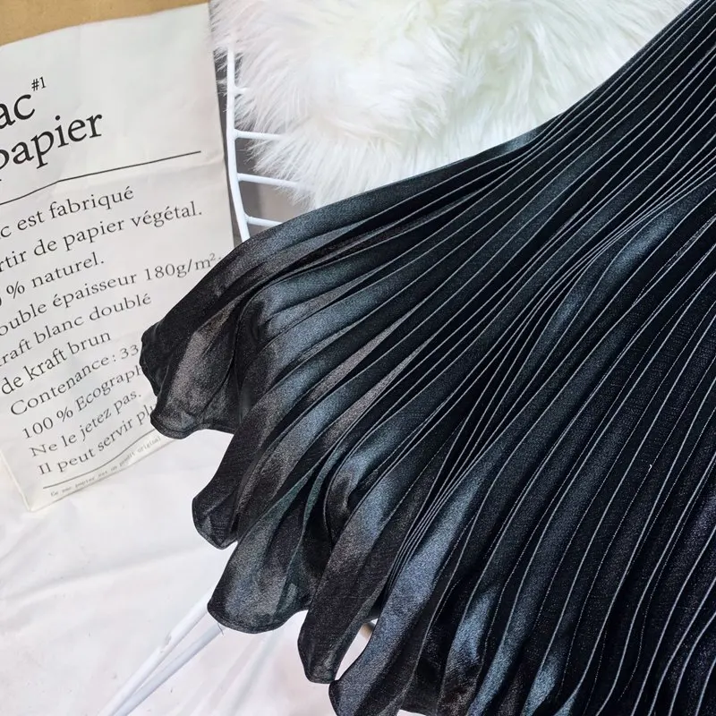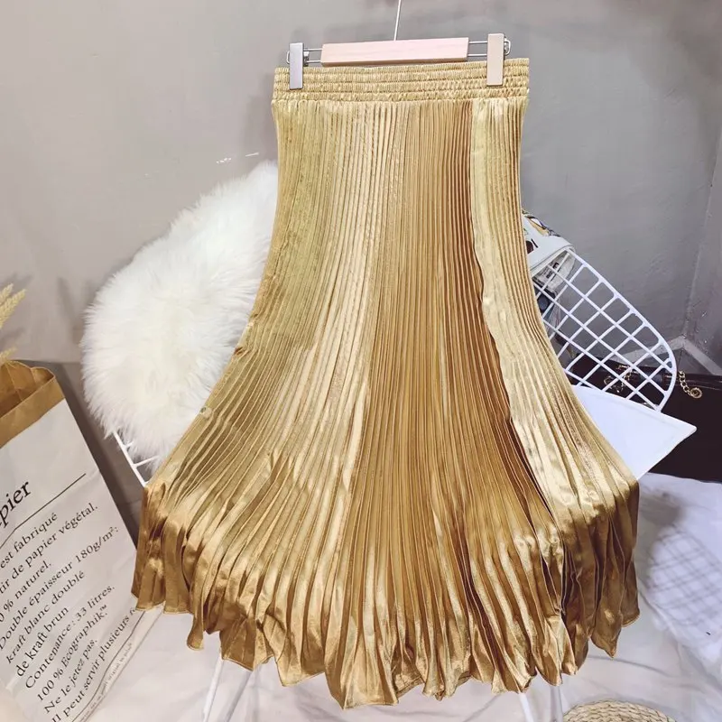 Юбка-Русалка Женская атласная, элегантная плиссированная макси юбка с завышенной талией, в Корейском стиле, 11 цветов, SK544, металлическая, лето 2020