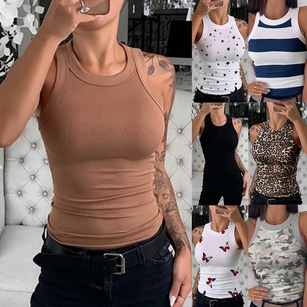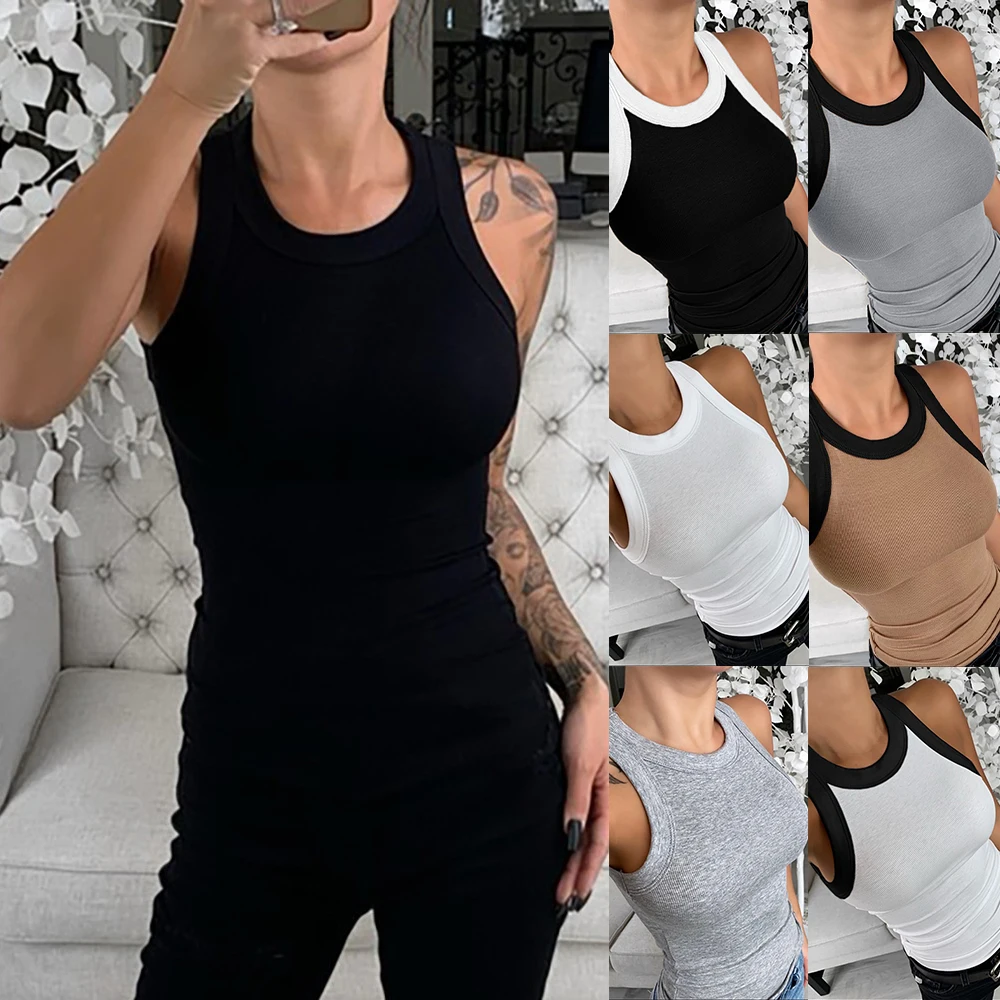 type4O Neck Summer Knit Top Sleeveless Women Sexy Basic T Shirt