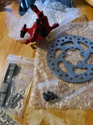 Работает отлично. Сборка довольно сложная, и мне пришлось помочь с некоторыми шайбами, чтобы сделать это правильно, потому что они терли таблетки и адаптер, на диске. Теперь он тормозит идеально и даже гвоздит колесо и вес 95 кг. Мне потребовался 45 мин, чтобы кататься на нем, для кого-то это интересно: D