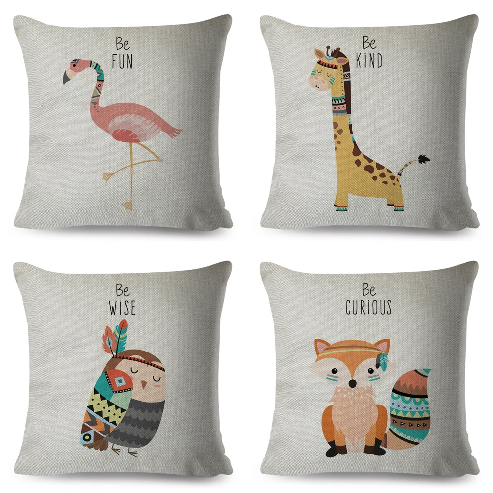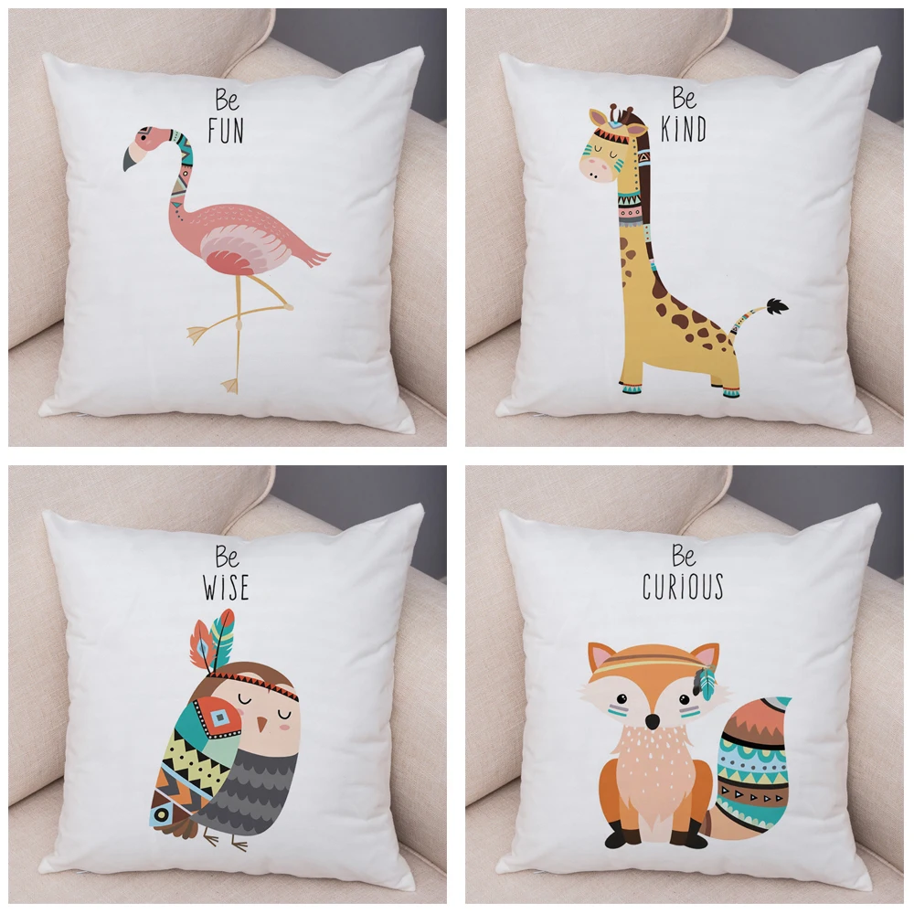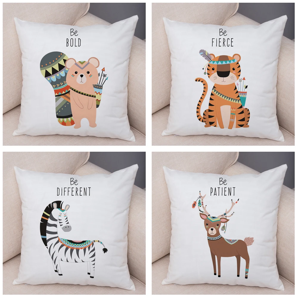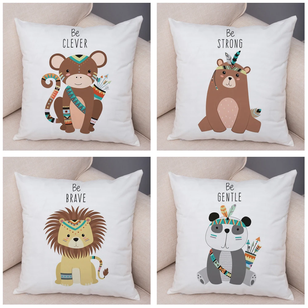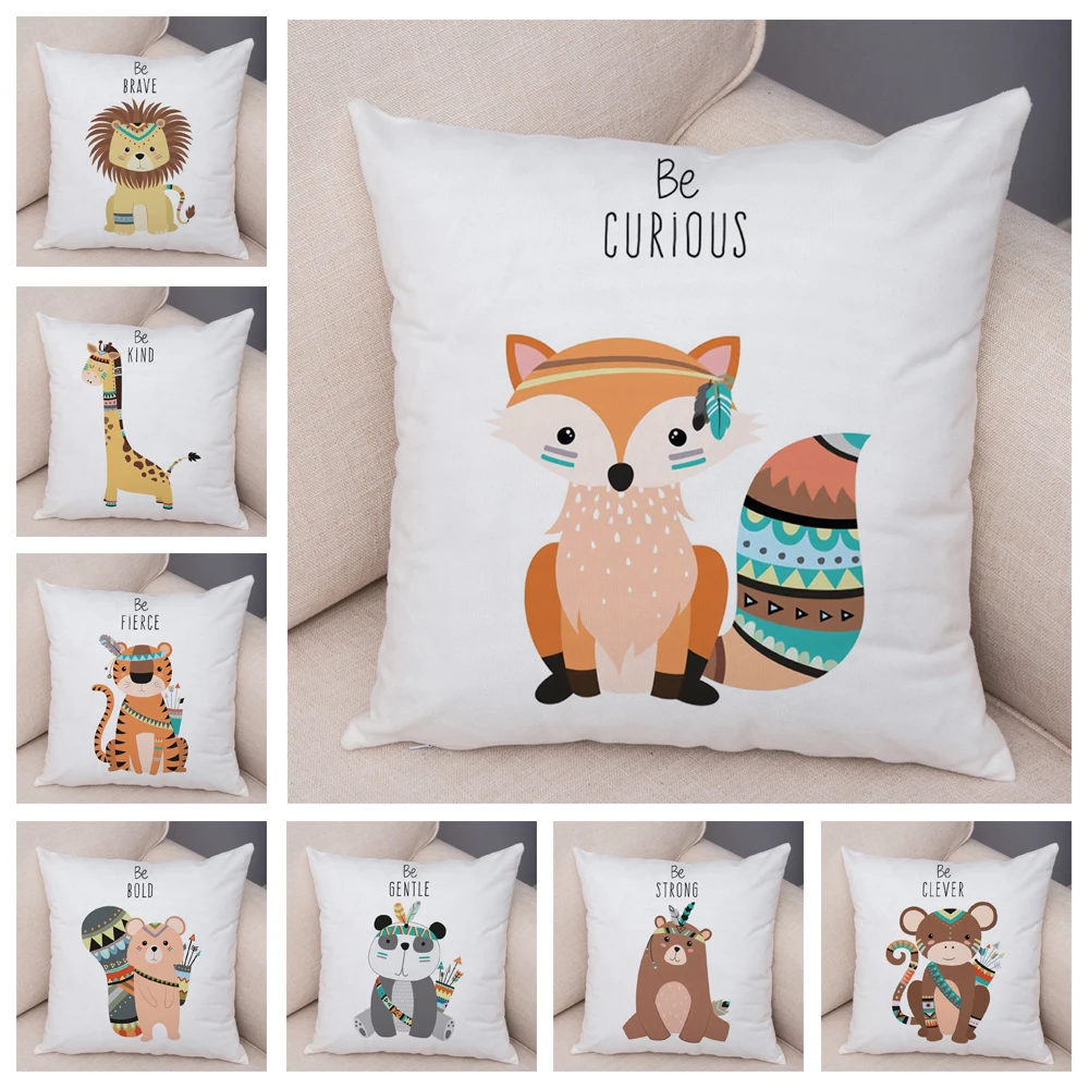 Скандинавский мягкий плюшевый Подушка-Жираф чехол для дивана с изображением Льва лисы, панды, медведя, 45x45 см, чехол для подушки с изображением животных