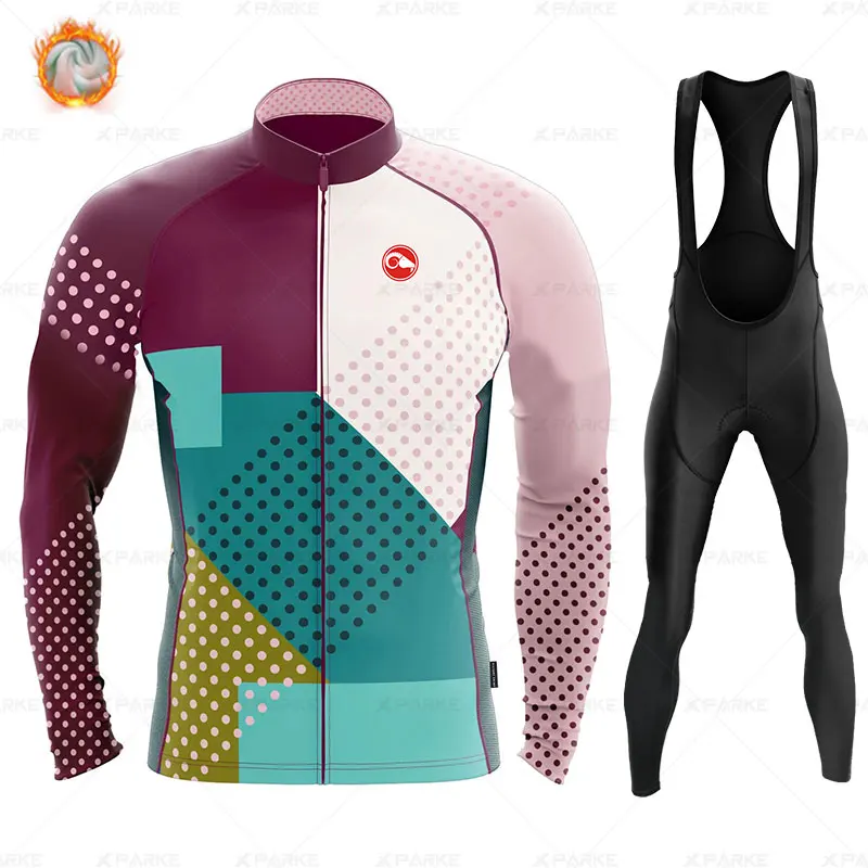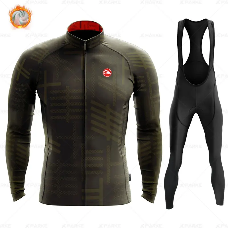 Новый Зимний утепленный флисовый комплект, одежда для велоспорта, Мужской трикотажный костюм, спортивная одежда для велоспорта, велосипеда, штаны с нагрудником, теплые комплекты