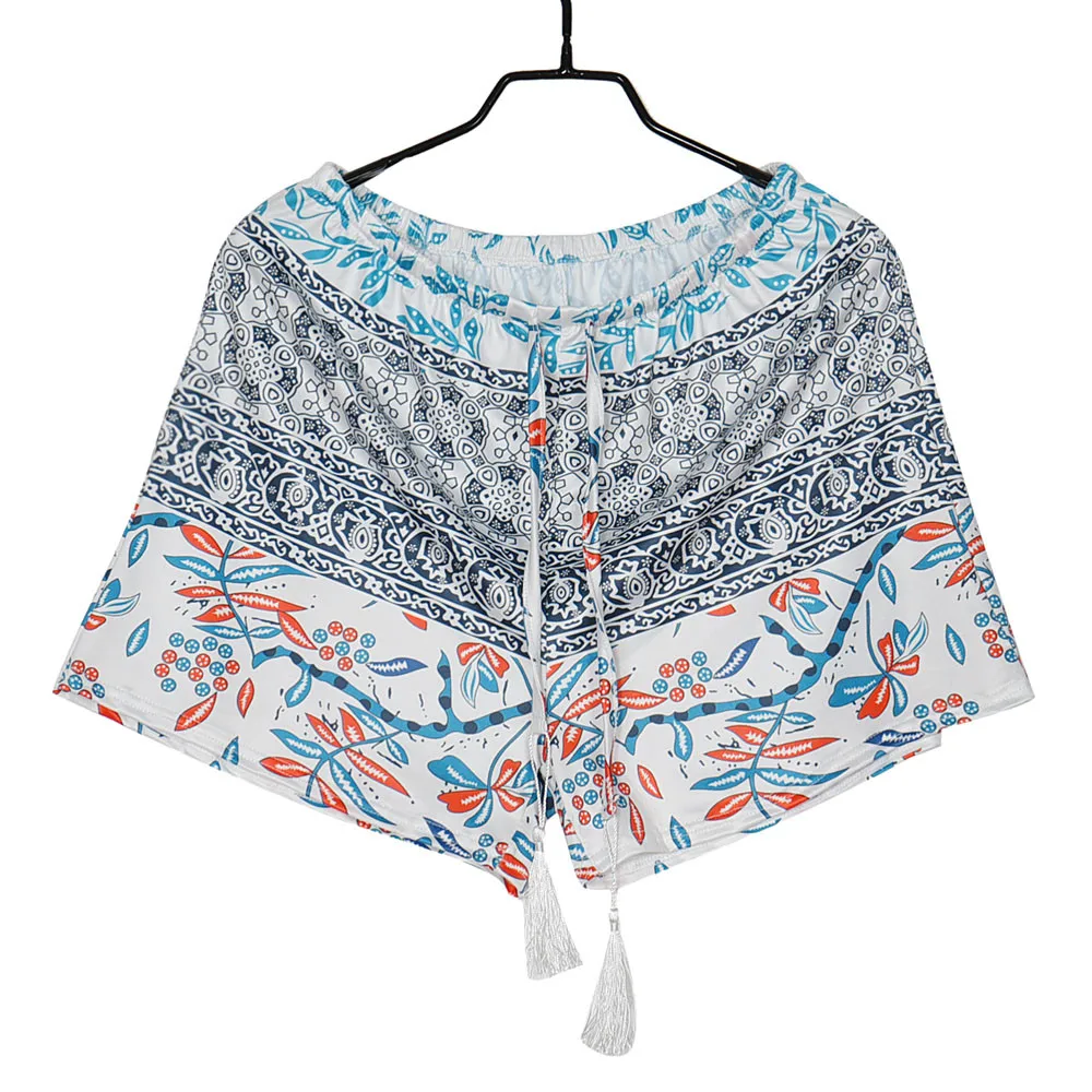 Шорты женские в богемном пляжном стиле, повседневные хлопковые пикантные домашние шорты, женские шорты для фитнеса, с эластичной талией и шнурком, Blue31