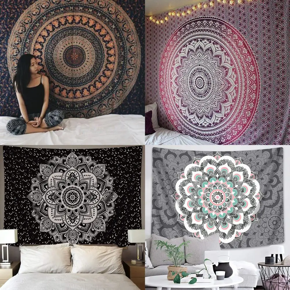 Гобелен настенный подвесной, из полиэстера, с принтом мандалы, коврик для йоги, пляжный коврик, одеяло, большой коврик для сна 150*200 см, настенный художественный гобелен