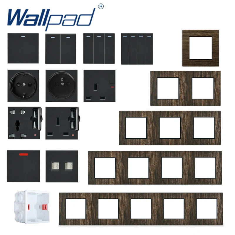 Настенная розетка с деревянным дизайном, Бесплатная комбинация, S6 Wallpad, Роскошный металлический каркас, розетка электропитания с USB