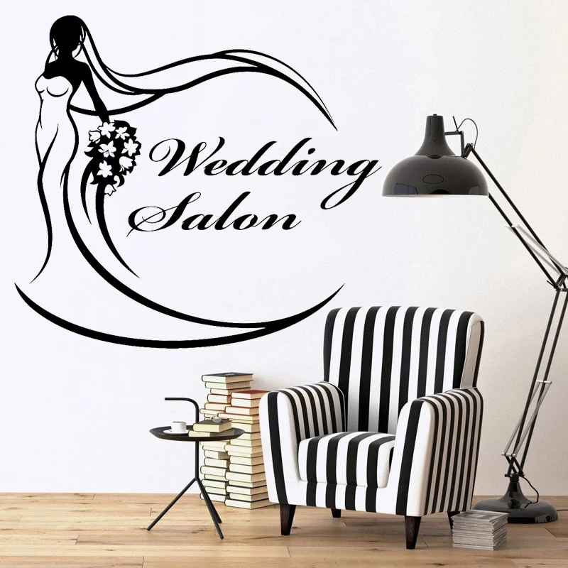 Свадебный магазин Наклейка на стену свадебное платье наклейка свадебные наклейки для салонов Съемный магазин украшение на окно креативный цветок невесты