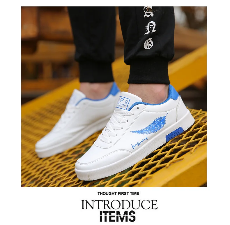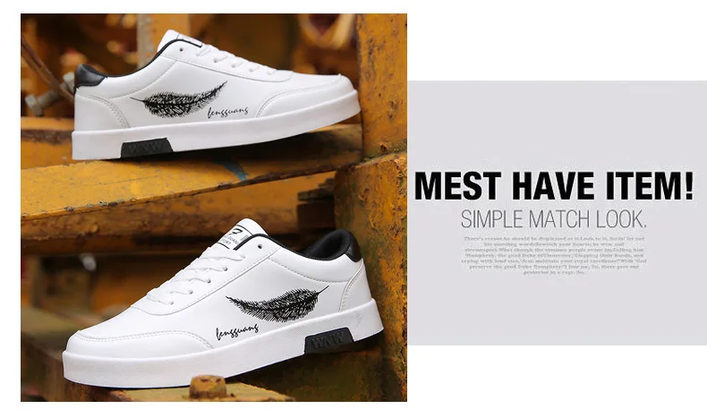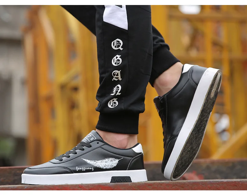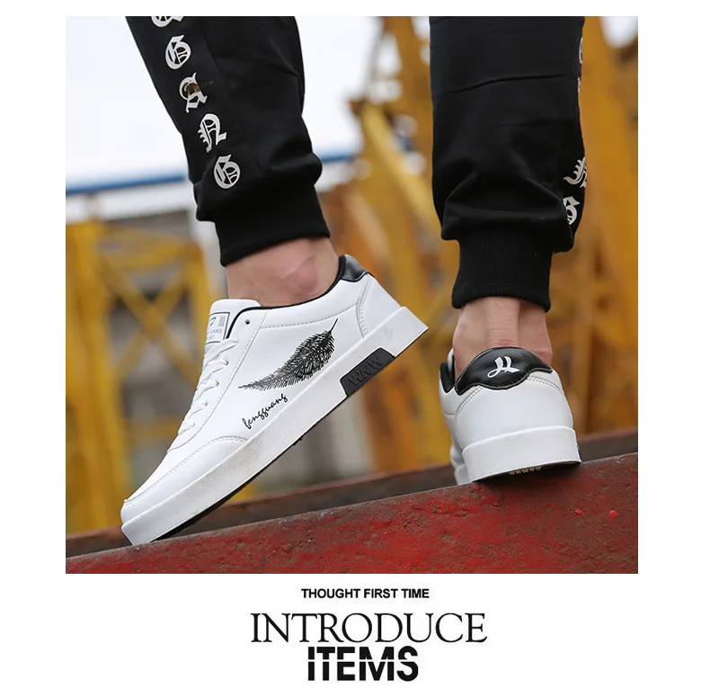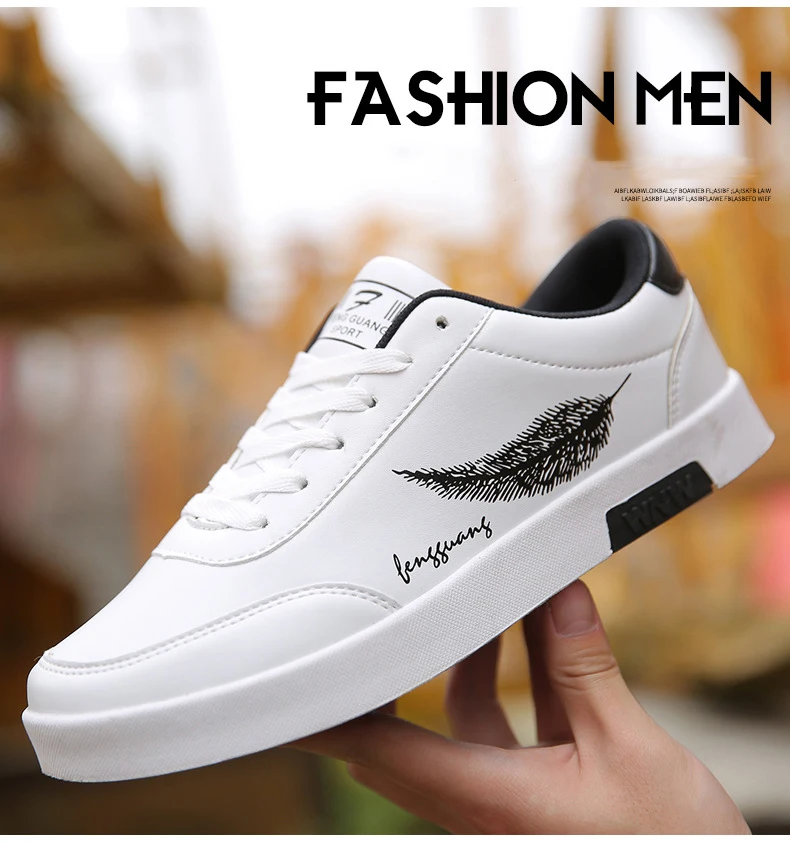Белые кожаные кроссовки с принтом перьев, мужская повседневная весе...