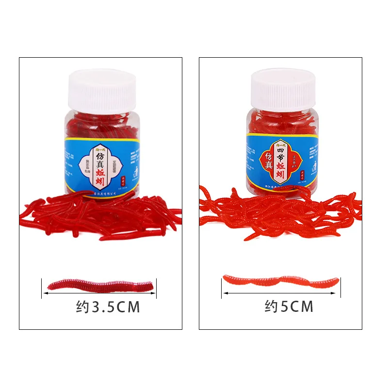 This jar is very small as are these simulated red worms. Nevertheless they can still be used to cover and conceal the fishing hooks.