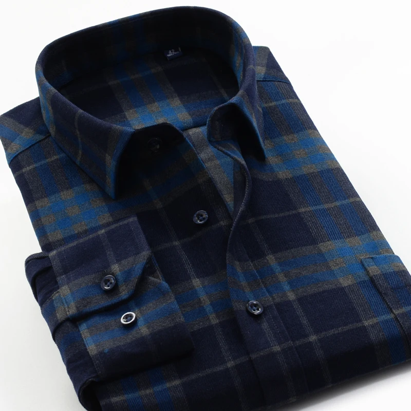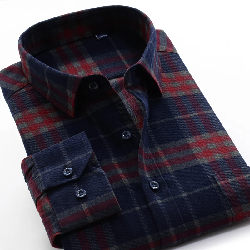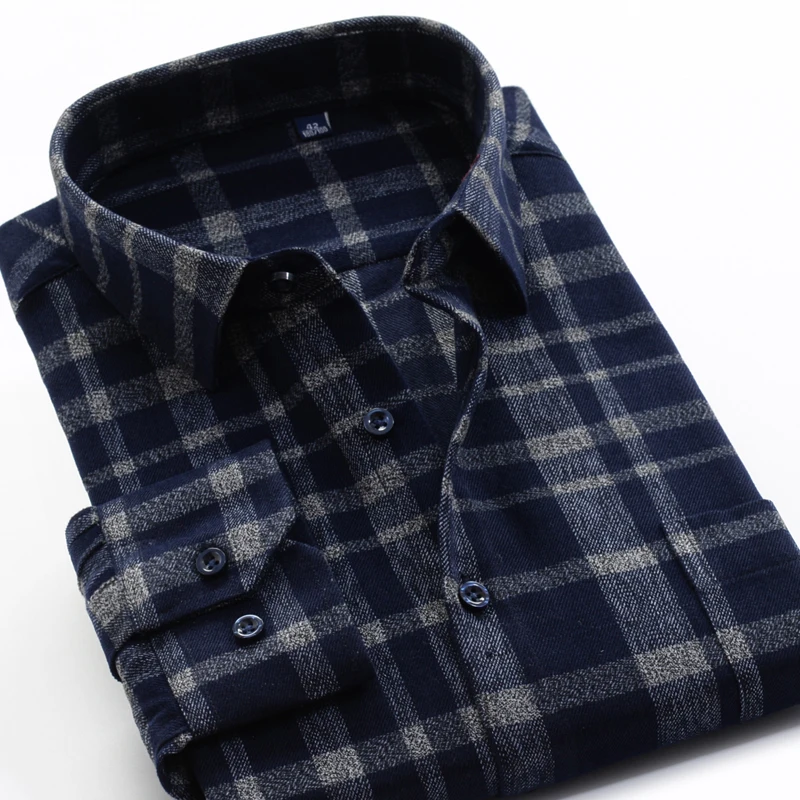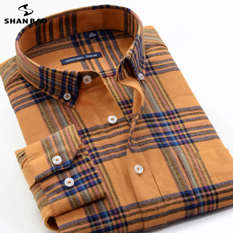 Осень-зима 2021, толстая теплая рубашка SHAN BAO из 100% хлопка, Классическая брендовая деловая повседневная мужская Свободная рубашка в клетку с длинными рукавами