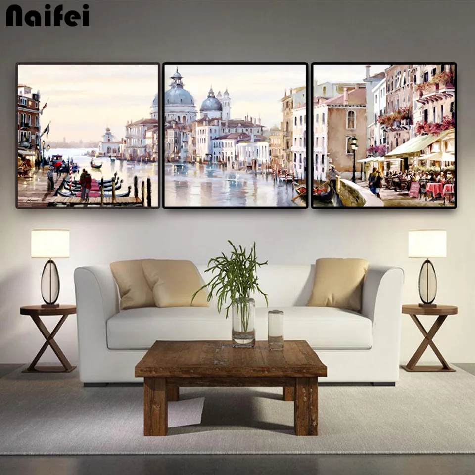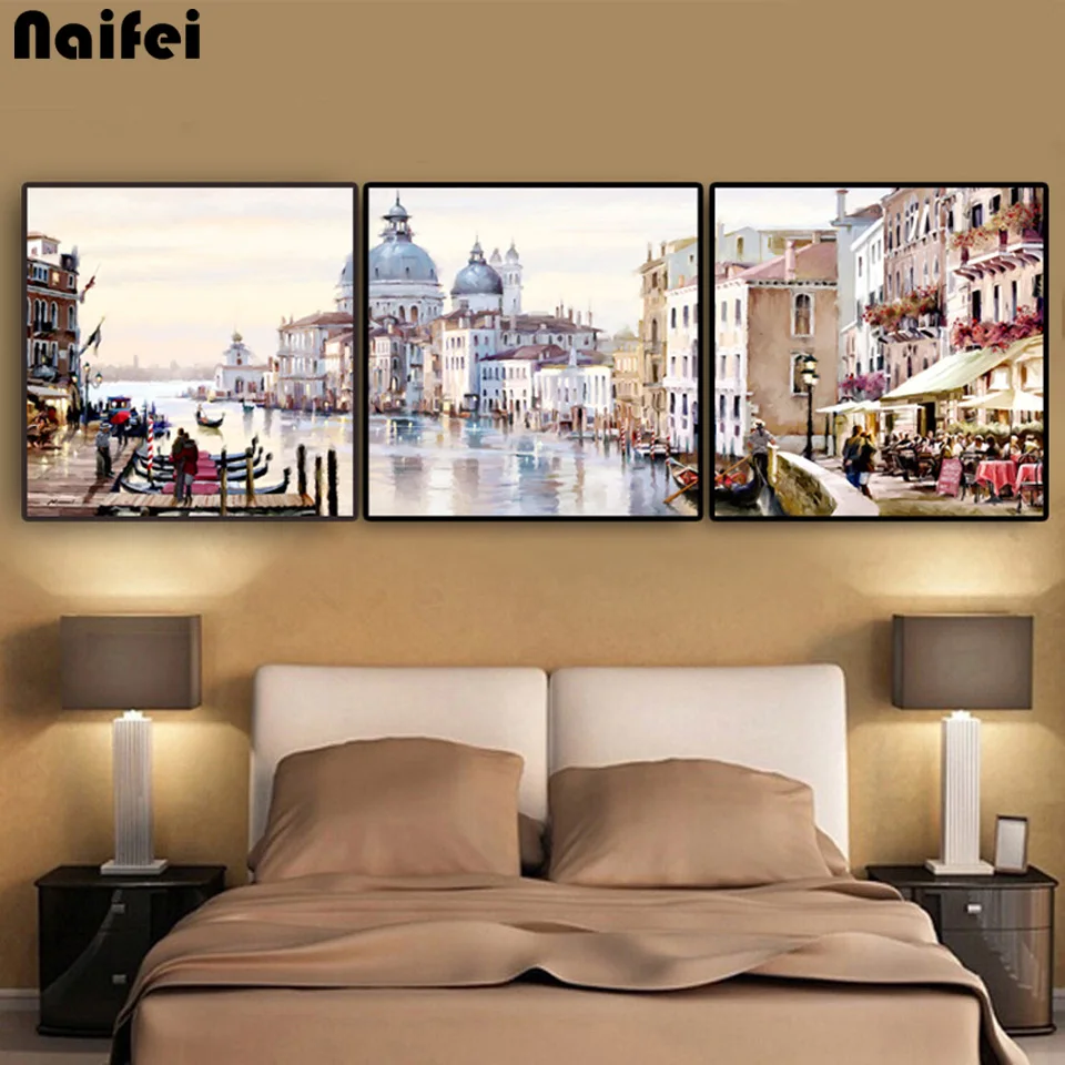 5D алмазная вышивка пейзаж 3 шт. абстрактный город водных зданий Diy полный набор алмазная живопись стежок мозаика Стразы Декор