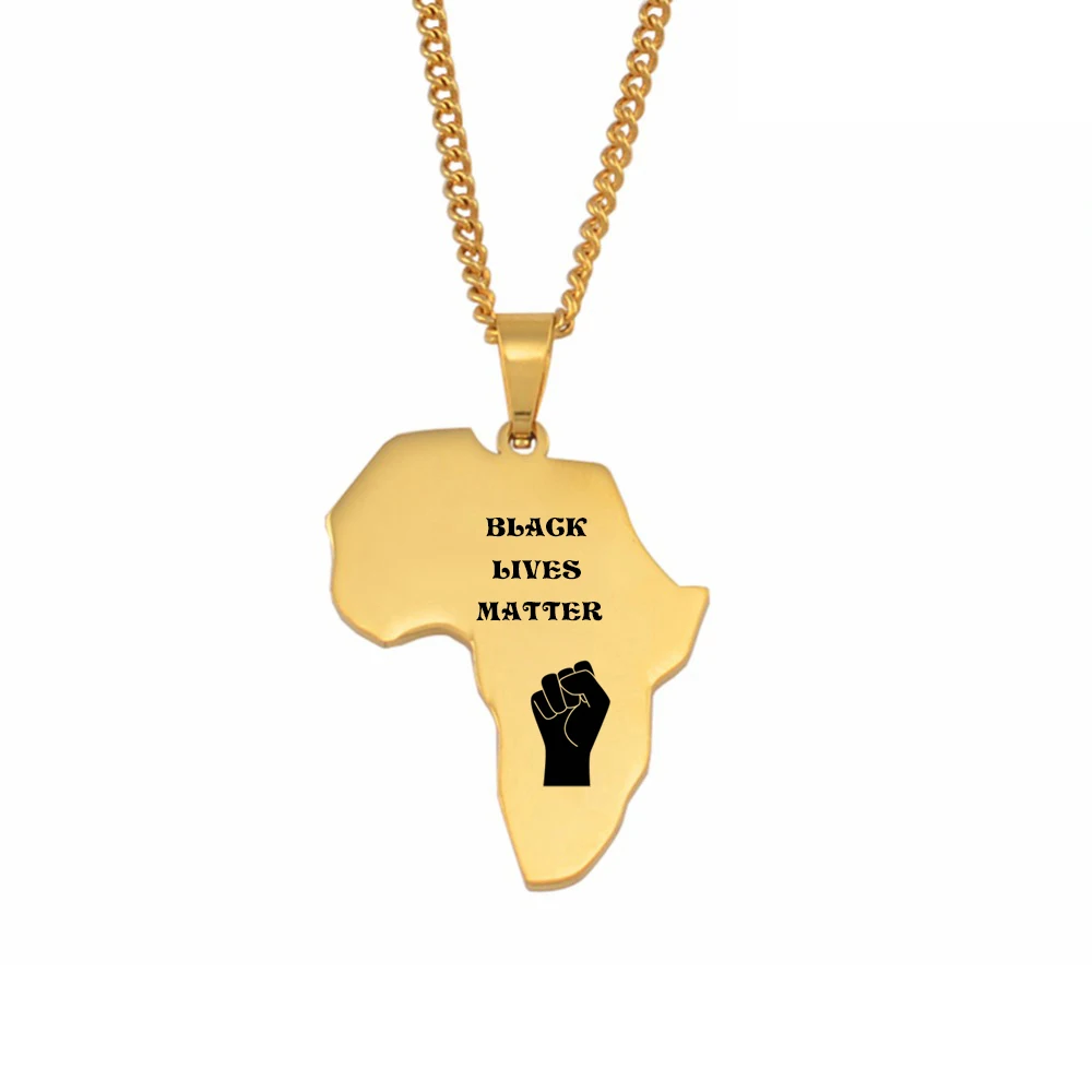 Ожерелья Anniyo с черной живой жизнью, материей Африканской карты, золотой цвет, африканская сила, ювелирные изделия с узором кулак # 055521B