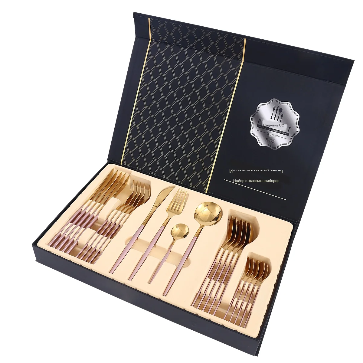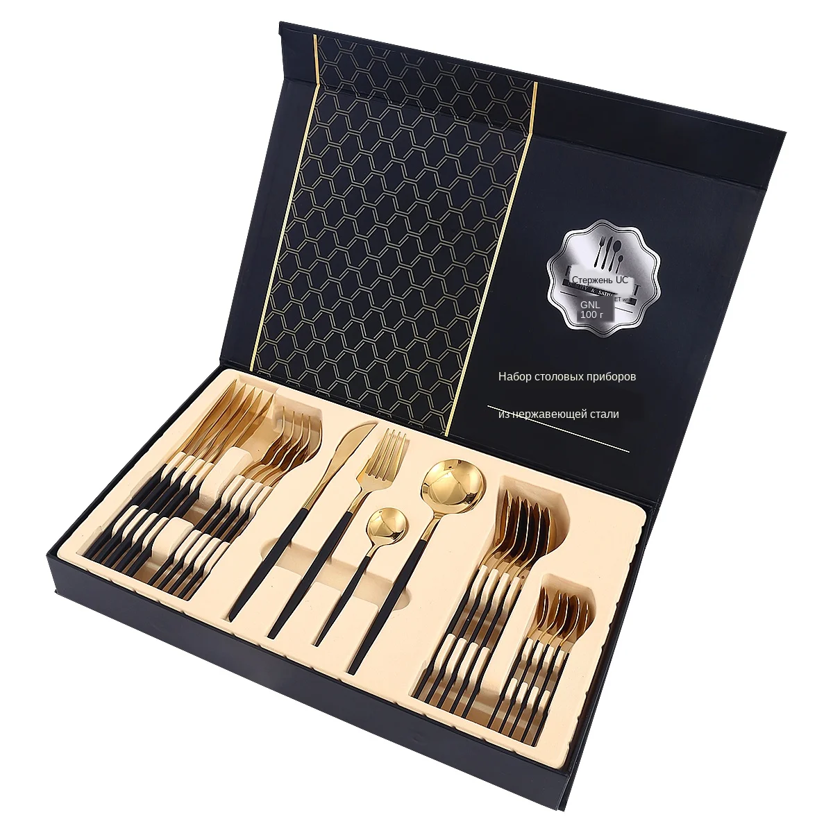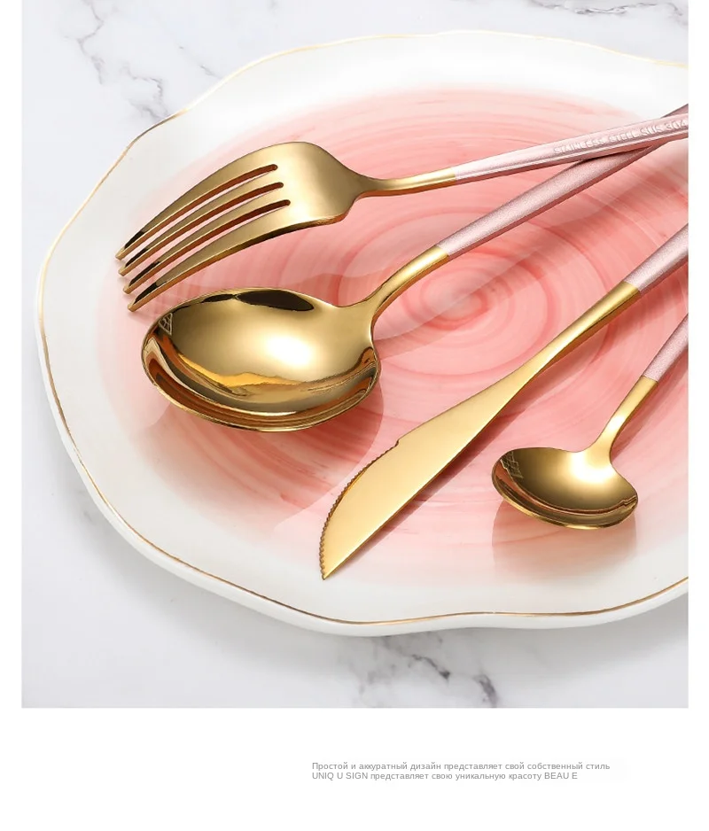 24 шт. золотой набор посуды из нержавеющей стали матовая Роскошная Посуда домашний нож вилка ложка Подарочная коробка Посудомоечная машина Безопасный набор столовых приборов