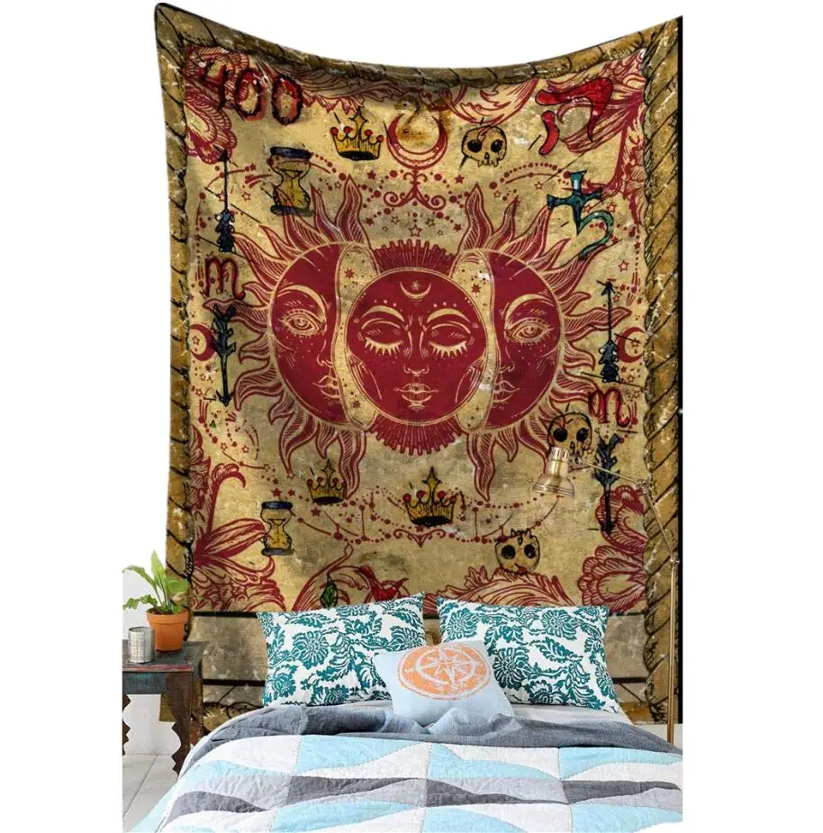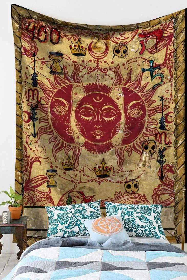Индийский Таро-гобелен, настенный подвесной гобелен с солнцем и луной, Настенный Ковер, психоделический гобелен, настенная ткань, гобелен