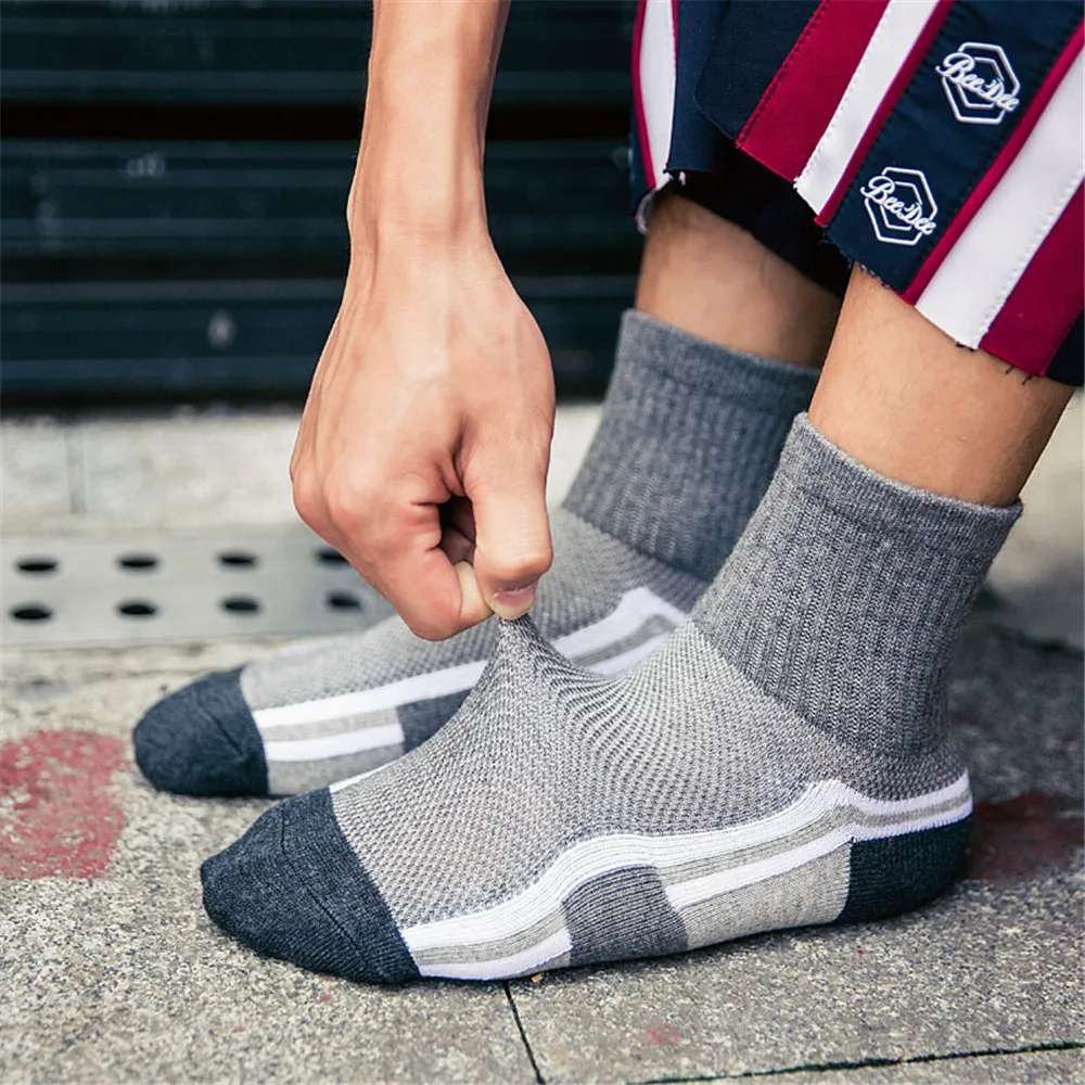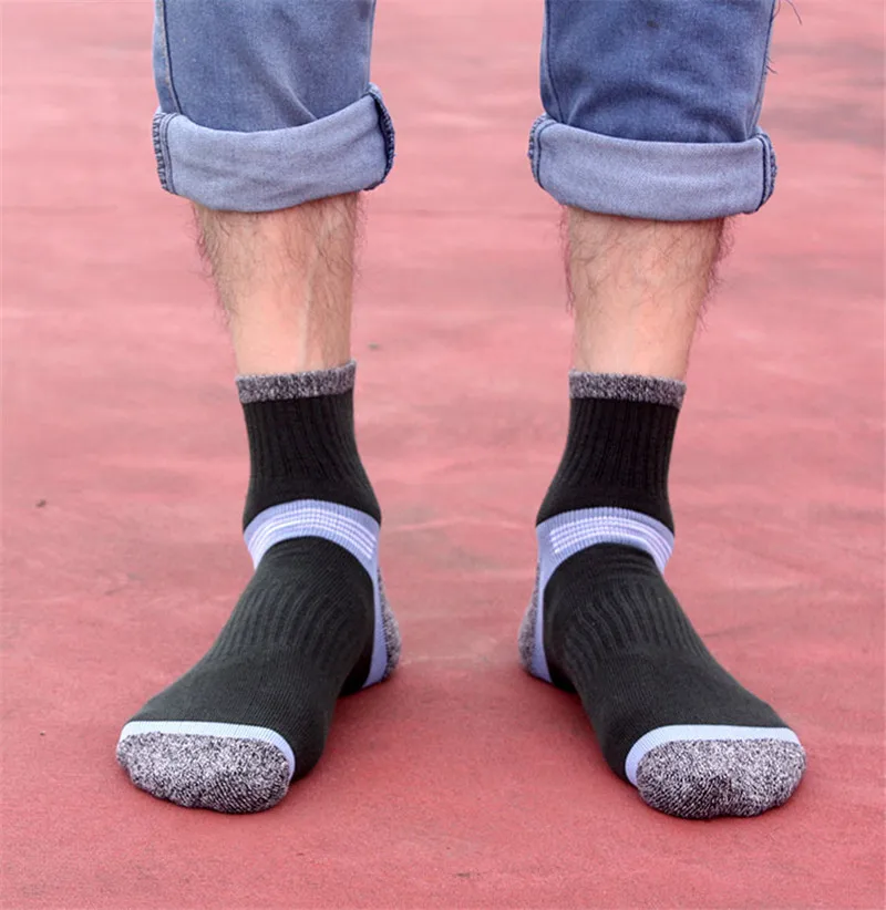 Хлопковые спортивные износостойкие дышащие мужские Компрессионные носки, всесезонные мужские баскетбольные носки с петлями