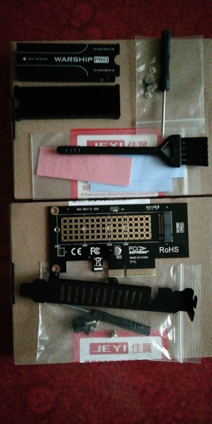 Пришло за 22 дня до 5-ки во Владимирскую область. Работает, проверил. 10-ка без проблем определила, на плате есть светодиод, моргает когда идёт обращение к диску. Спасибо продавцу за подарок (кисточка). Упаковка выше всяких похвал - пакет пупырка (наружный), радиатор и плата в разных коробках, плюс ещё всё в отдельных пакетах тоже пупырчатые. Хотя мне нужен был только радиатор, но я решил взять полный комплект, так как занимаюсь компами и думаю придётся тестировать nvme постоянно со временем (пока их берут редко), взял на будущее. С продавцом не общался.