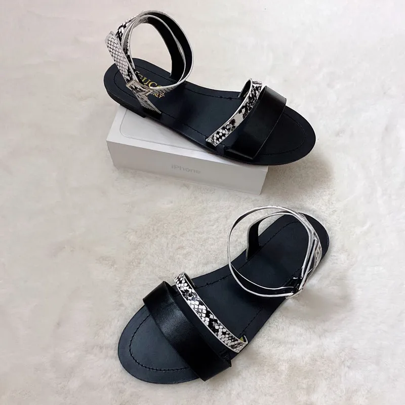 2020 г., Модные женские сандалии удобная женская обувь с открытым носком и змеиным узором на плоской подошве пикантные сандалии для вечерние, размера плюс 41