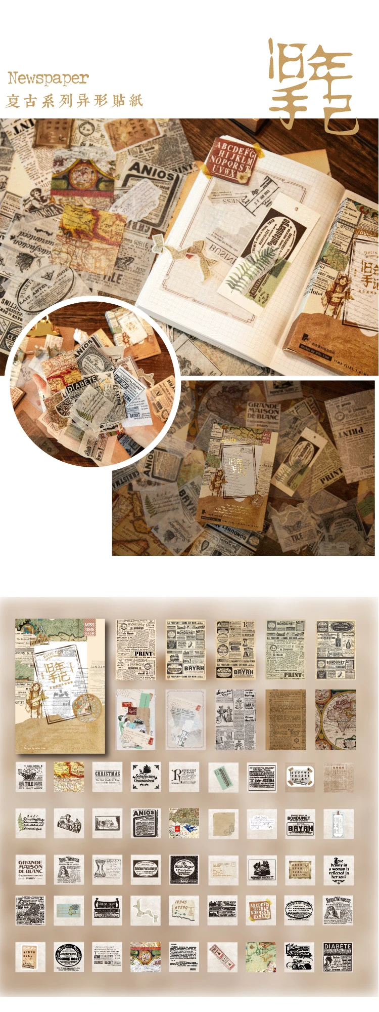 Винтажные стикеры в виде цветов и газет, 55 шт.лот, декоративные на...